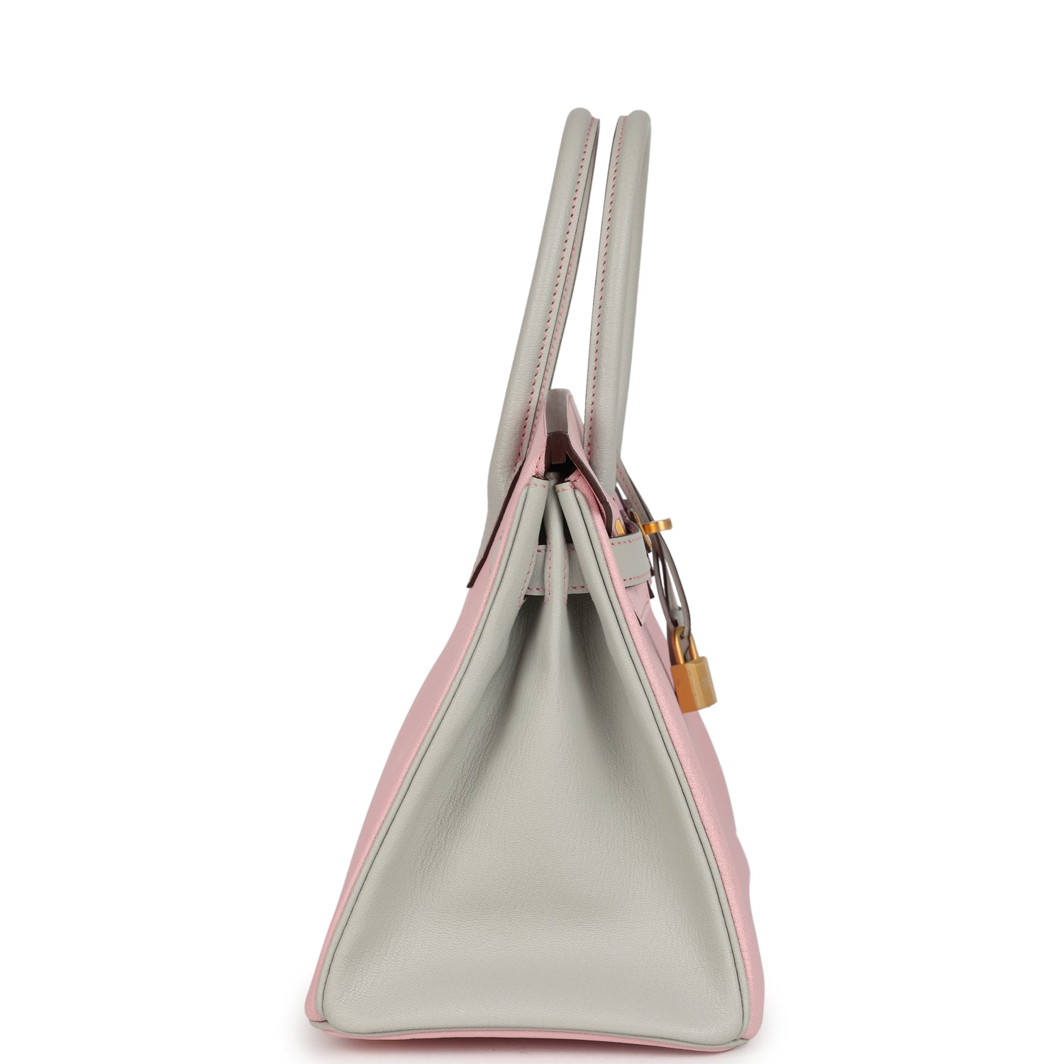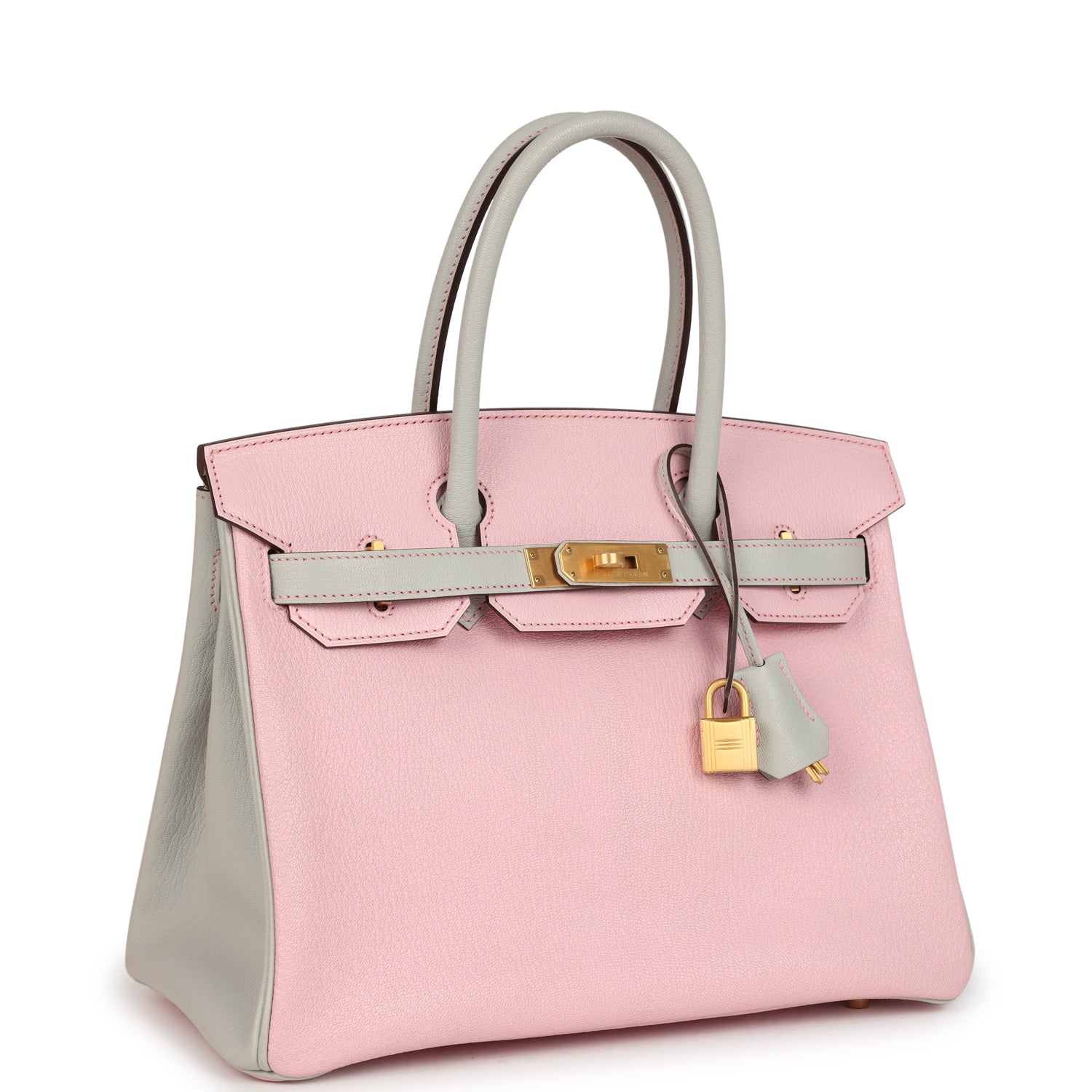 Pre-owned Hermes Special Order (HSS) Birkin 30 Rose Sakura and Gris Perle Chevre Brushed Gold Hardware