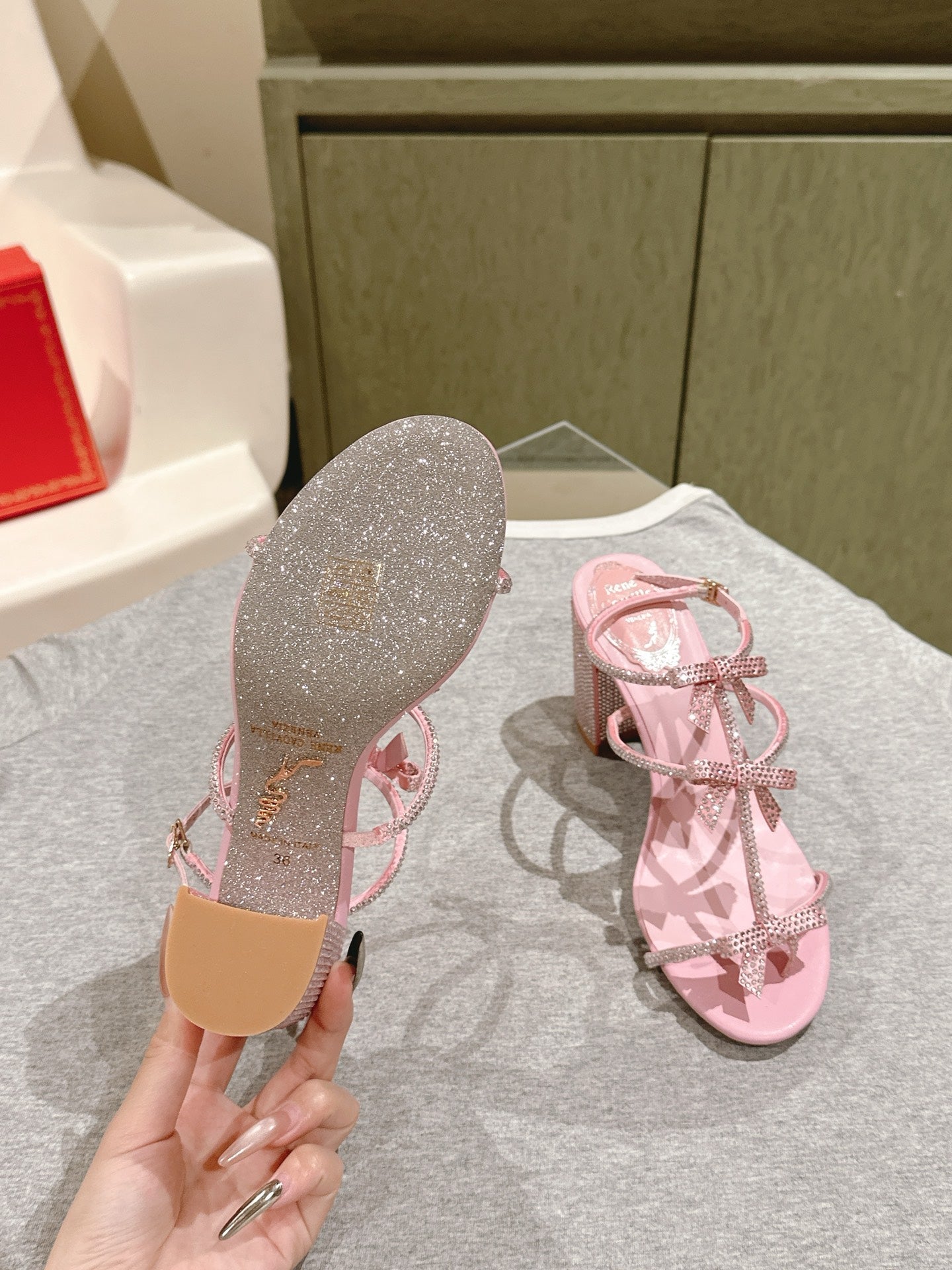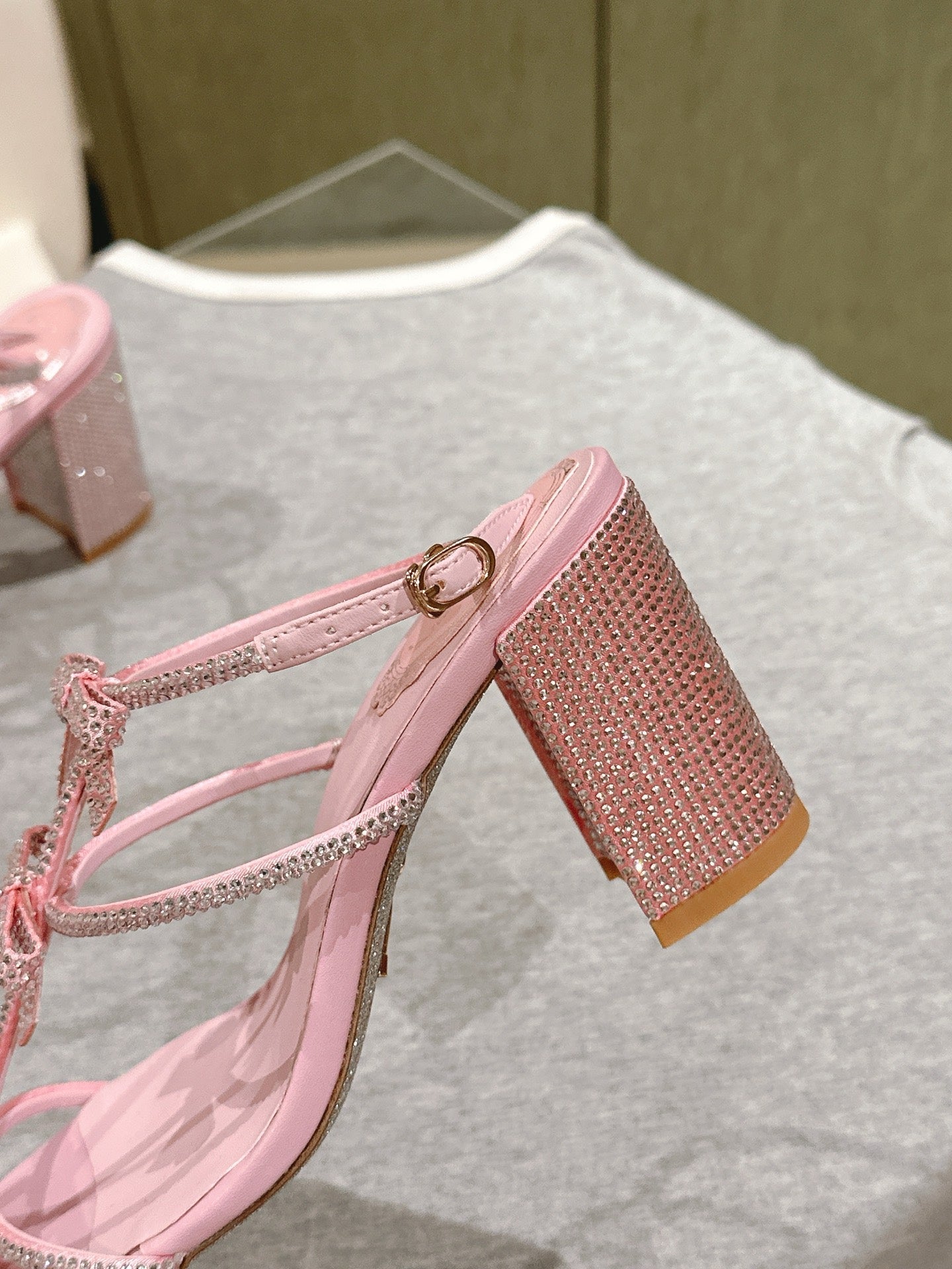 RC 25 Add Bow Diamond High Heeled Pink Silk Rhinestones 268071