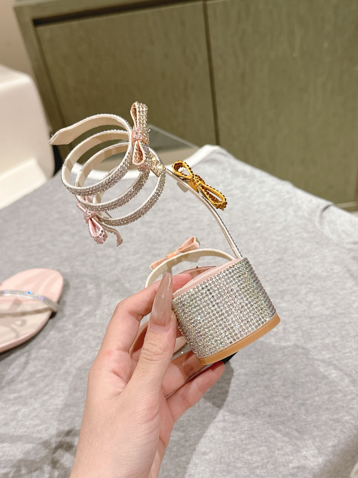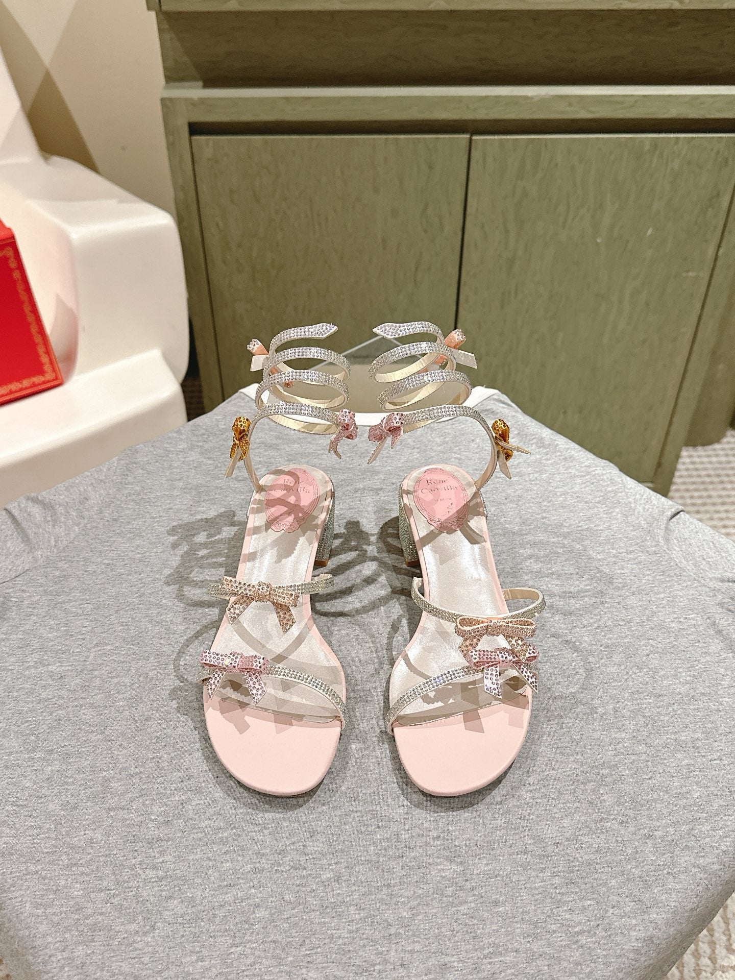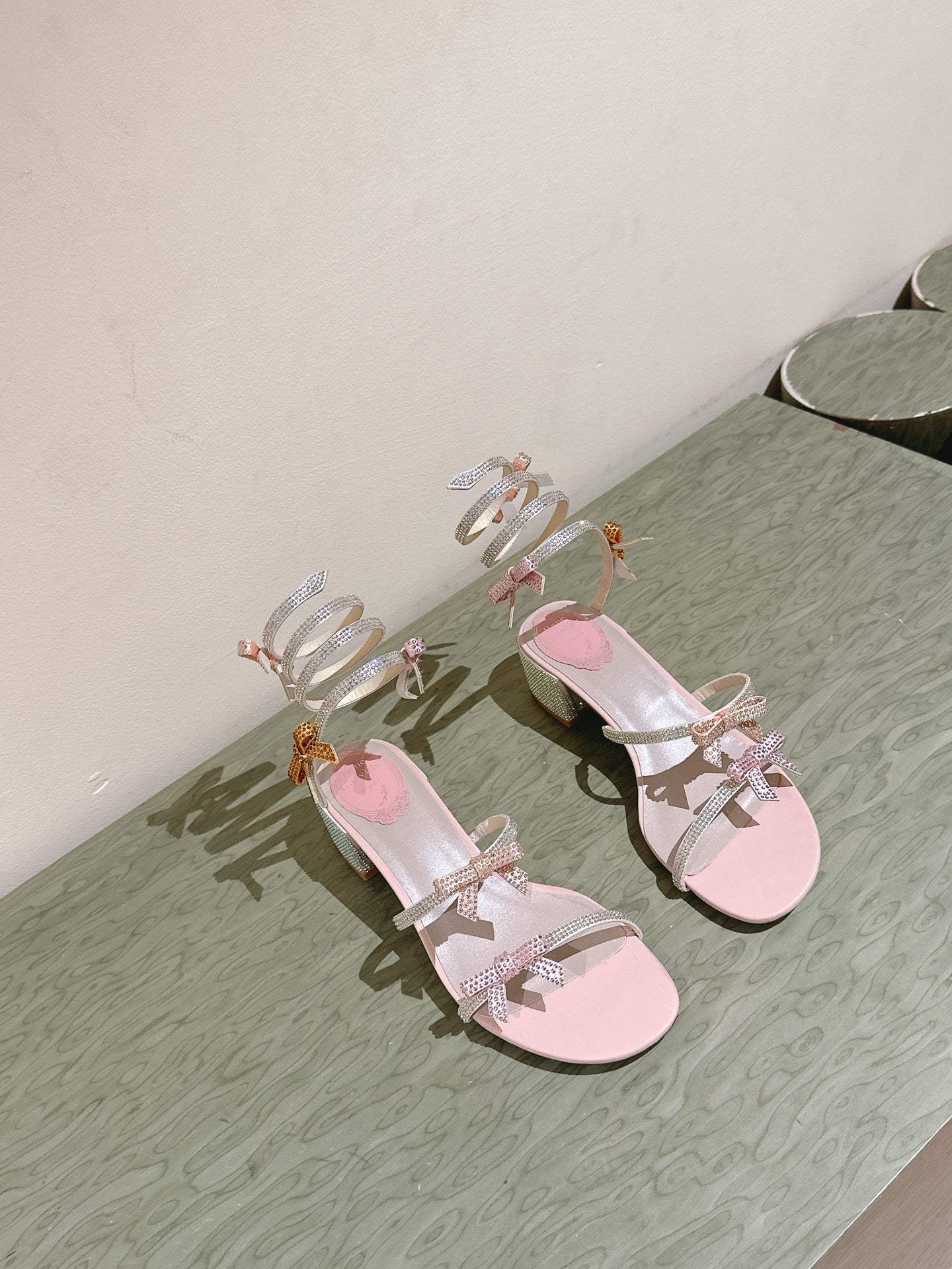RC 25 Snake-Shaped Add Bow High Heeled Pink Silk Rhinestones 268070