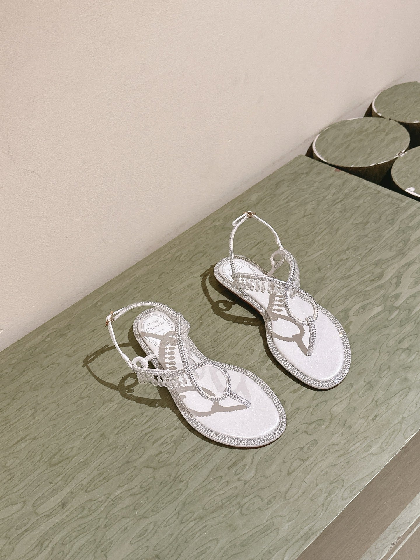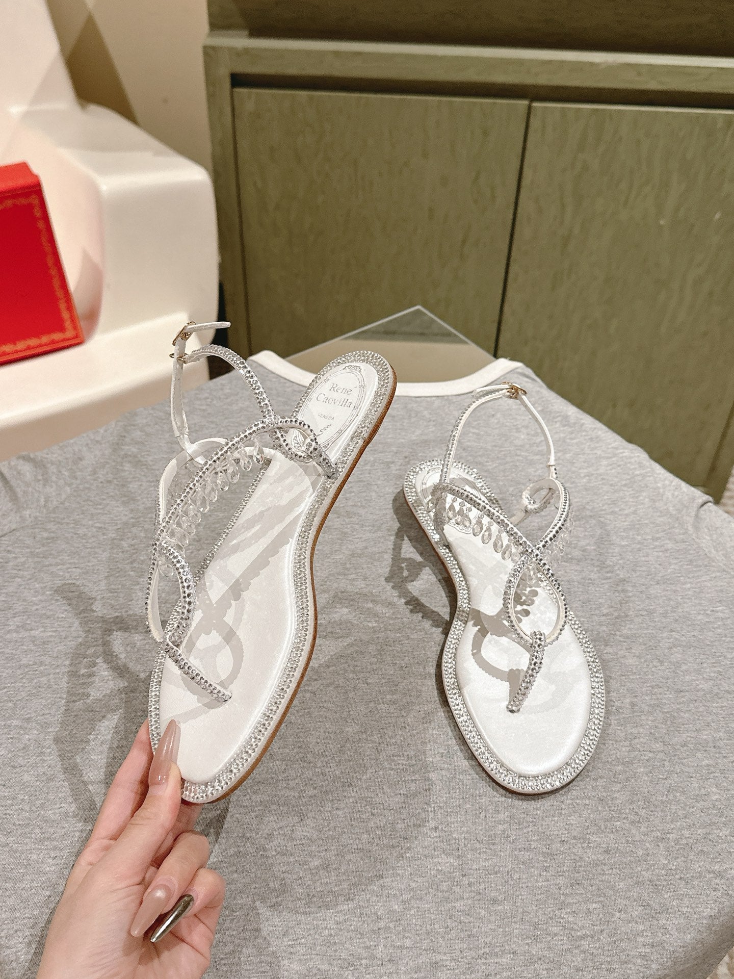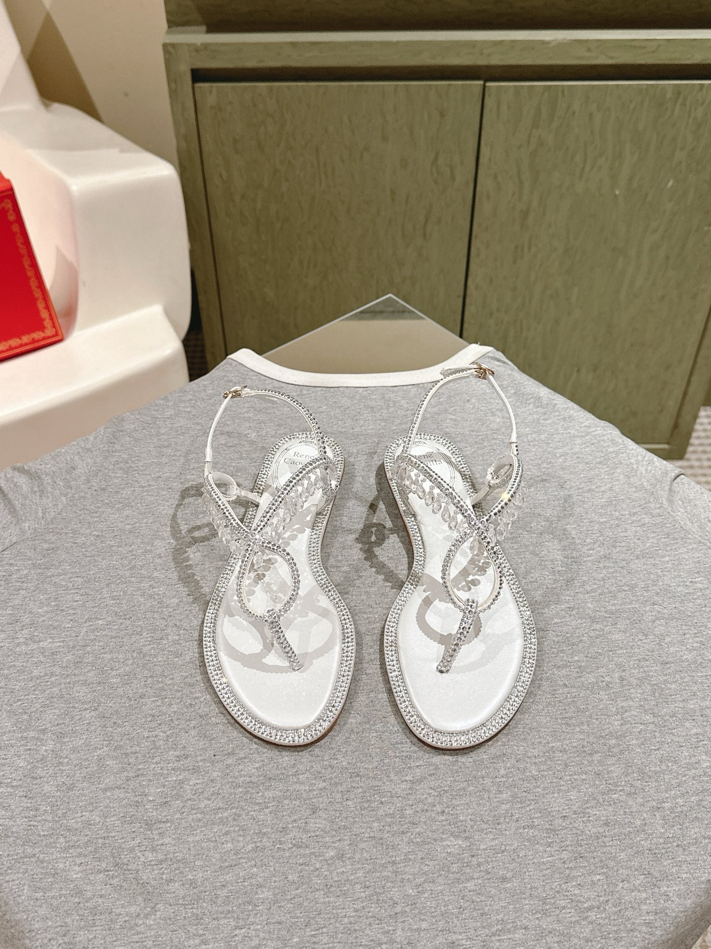 RC 25 Thong Diamond Flat Sole White Silk Rhinestones 268068
