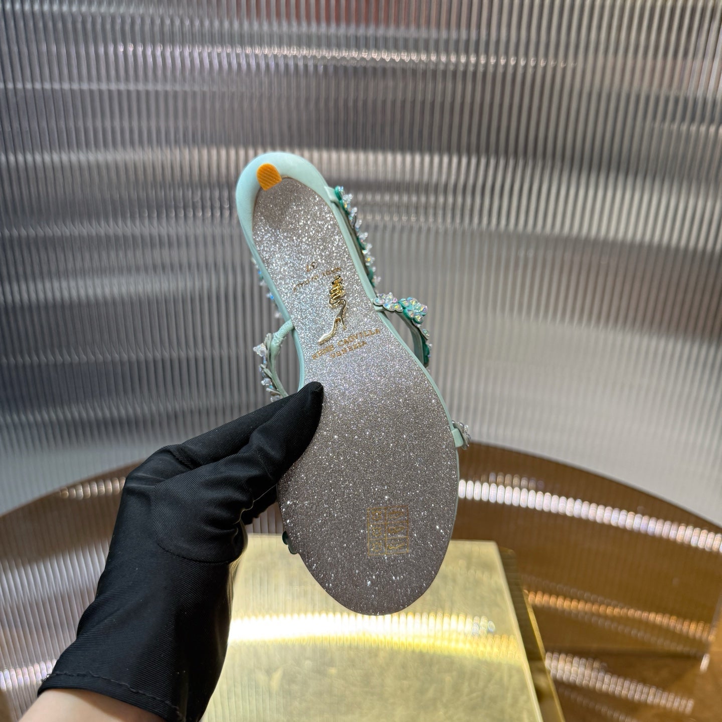 RC 25C Butterfly Flower Sandals Green Sheepskin Rhinestones 310659