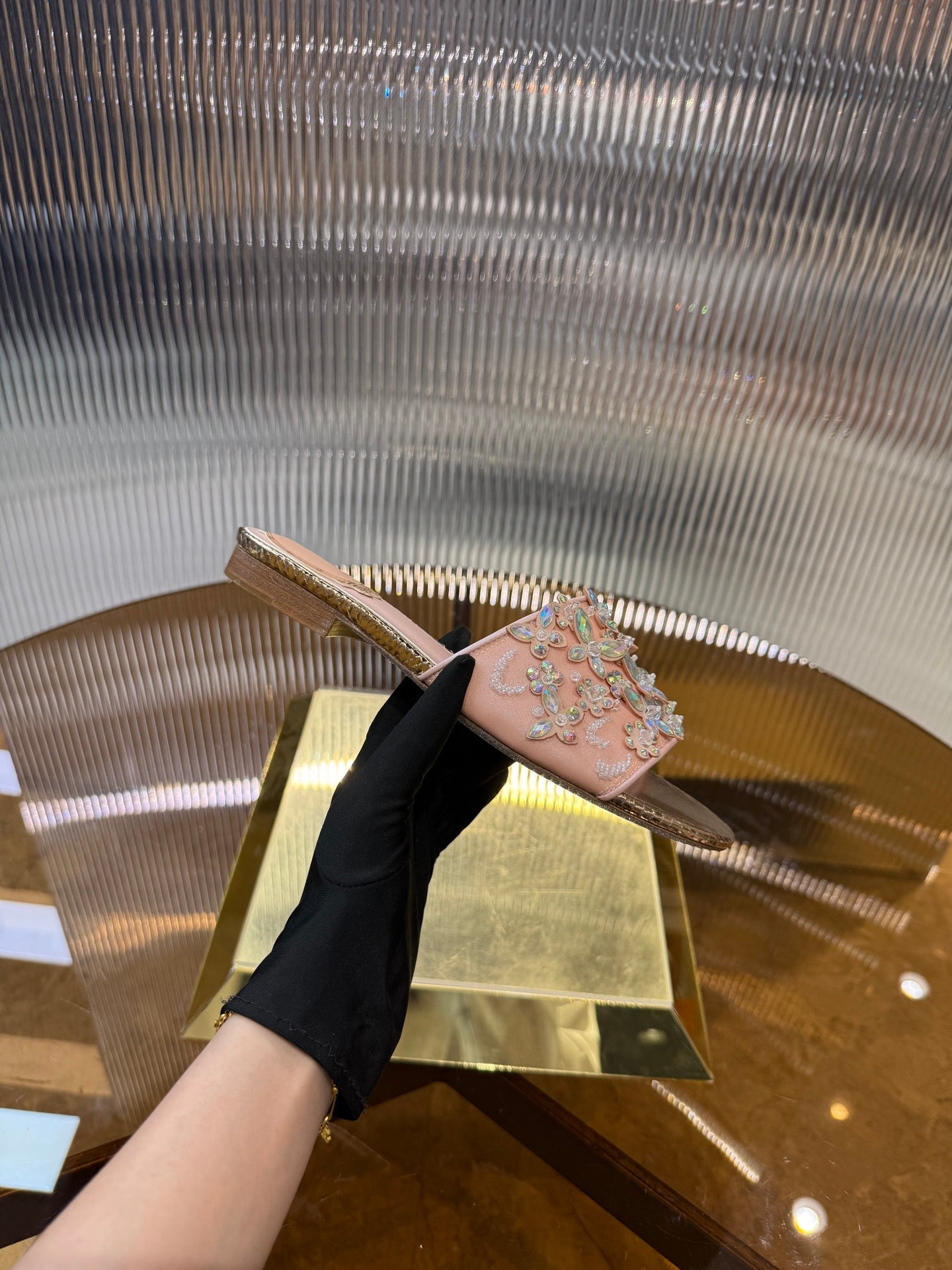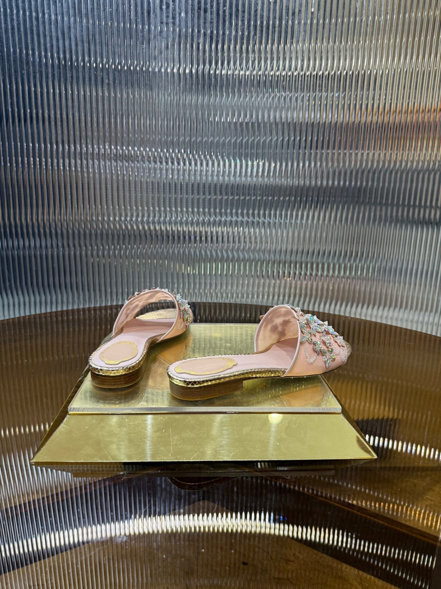 RC 25C Butterfly Flower Sandals Slippers Pink Sheepskin Rhinestone 275771