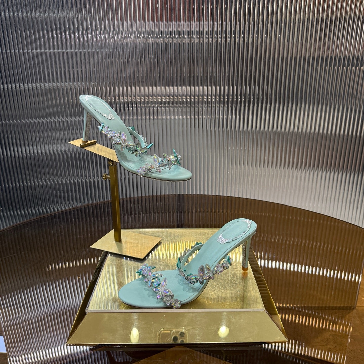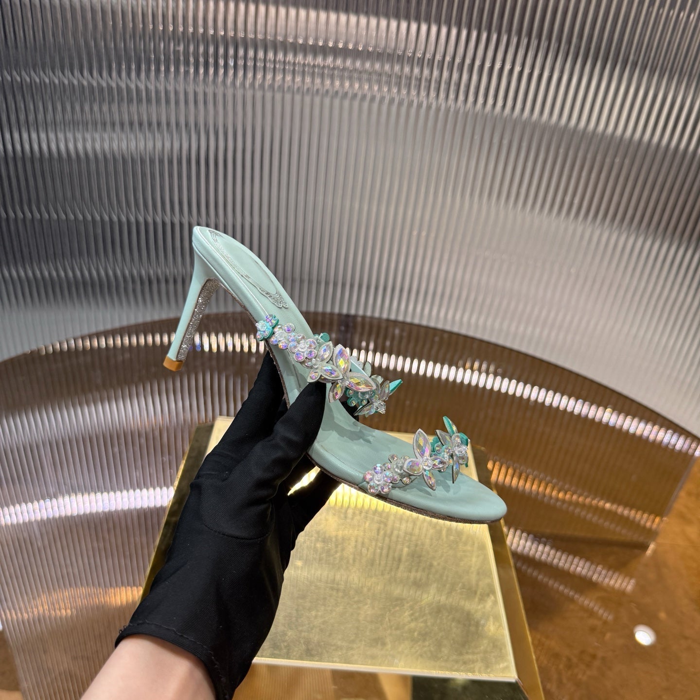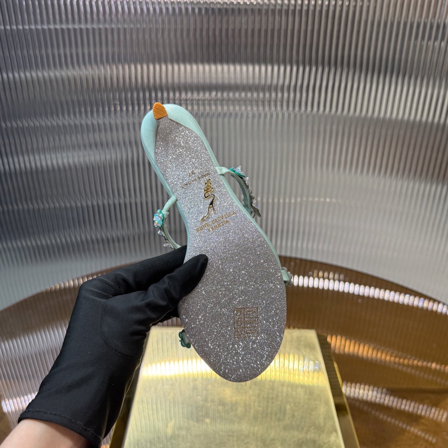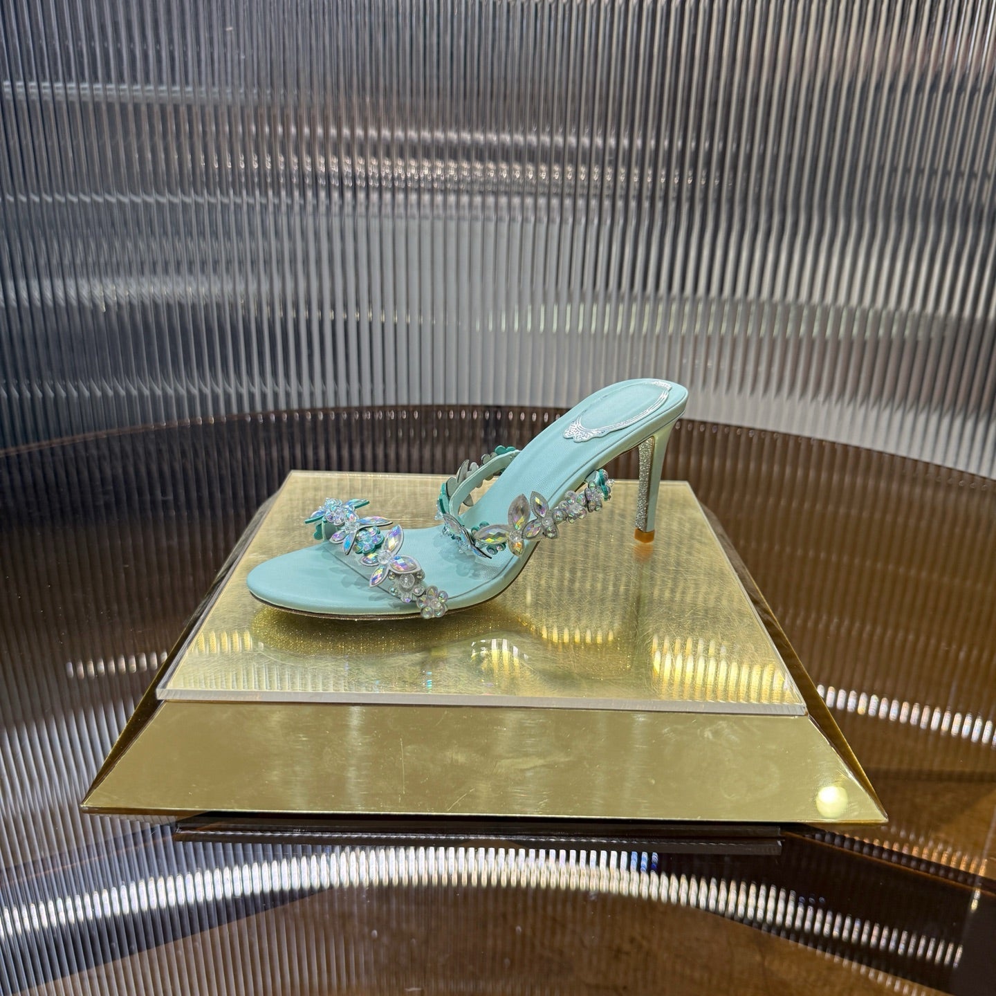 RC 25C Butterfly Flower Slippers Green Sheepskin Rhinestones 310657