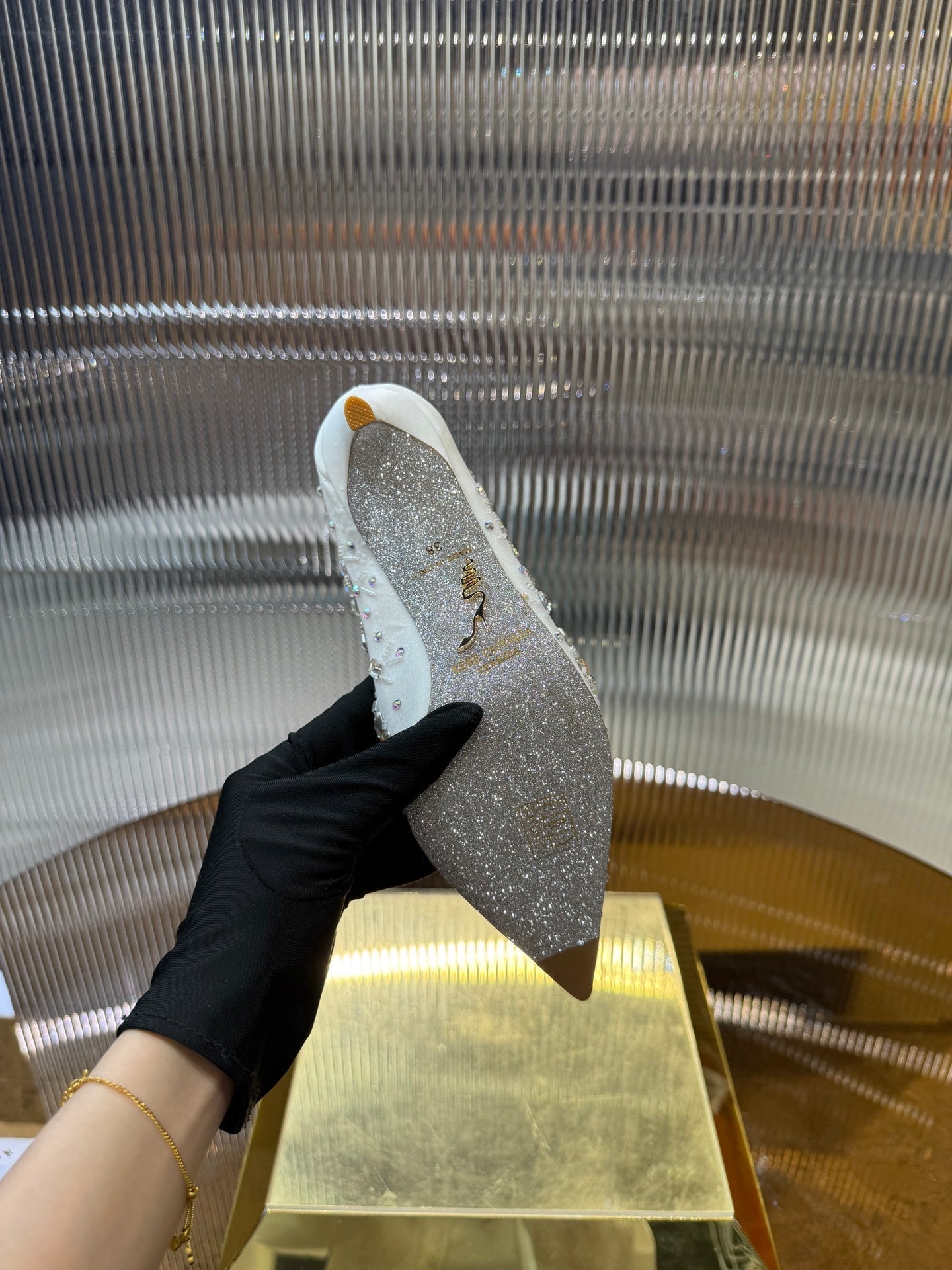 RC 25C Crystal Pearl Gem Lace High Heels White Sheepskin 275753