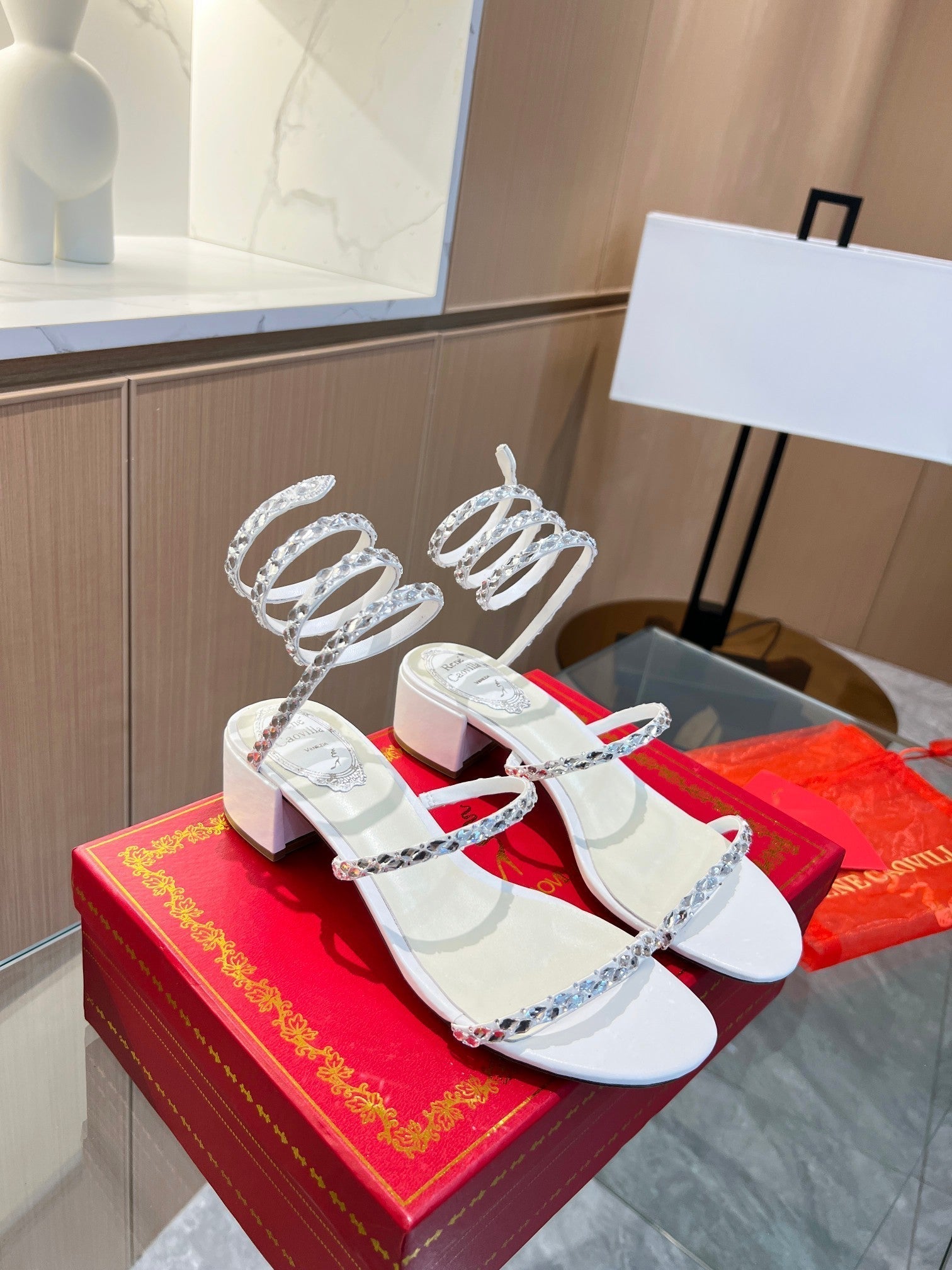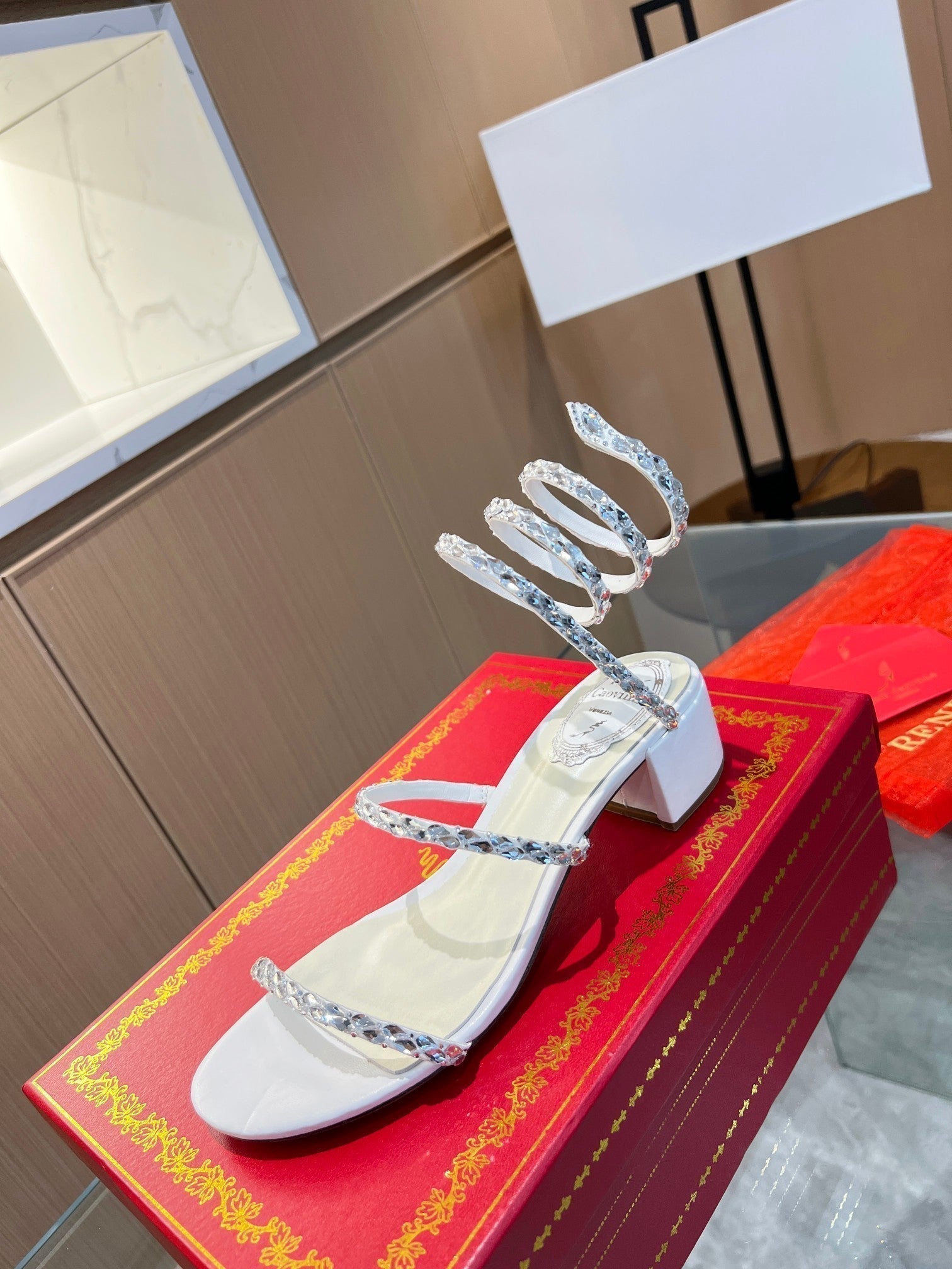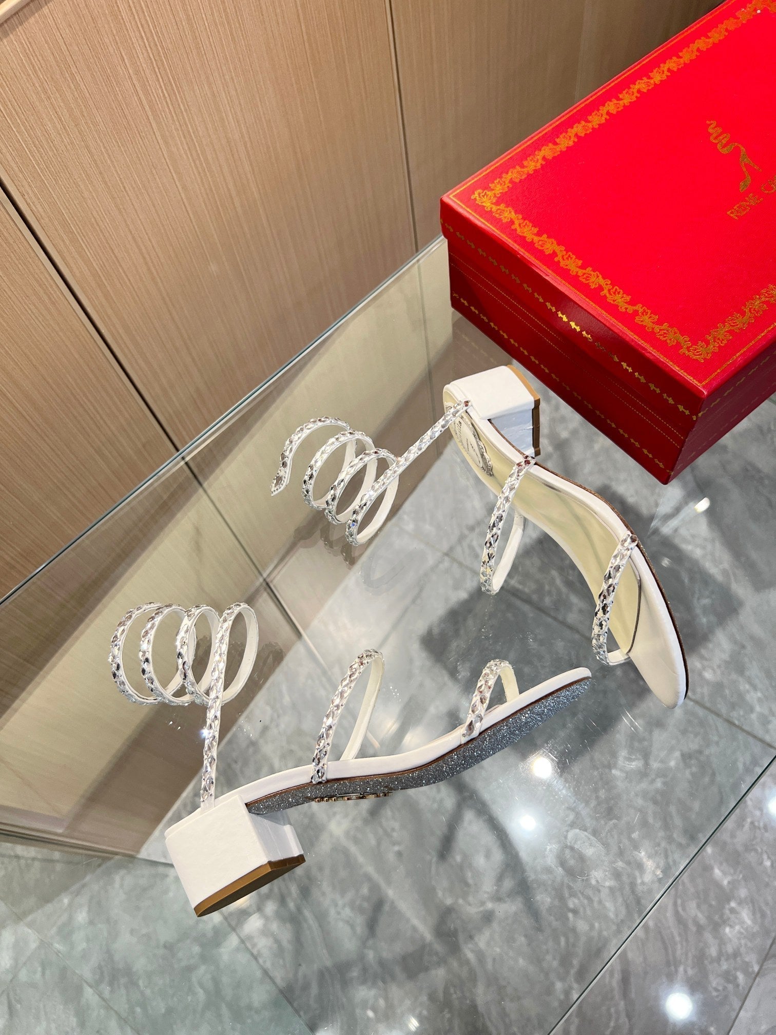 RC Diamond Sandals White Silk Creole Glass Diamond 341982