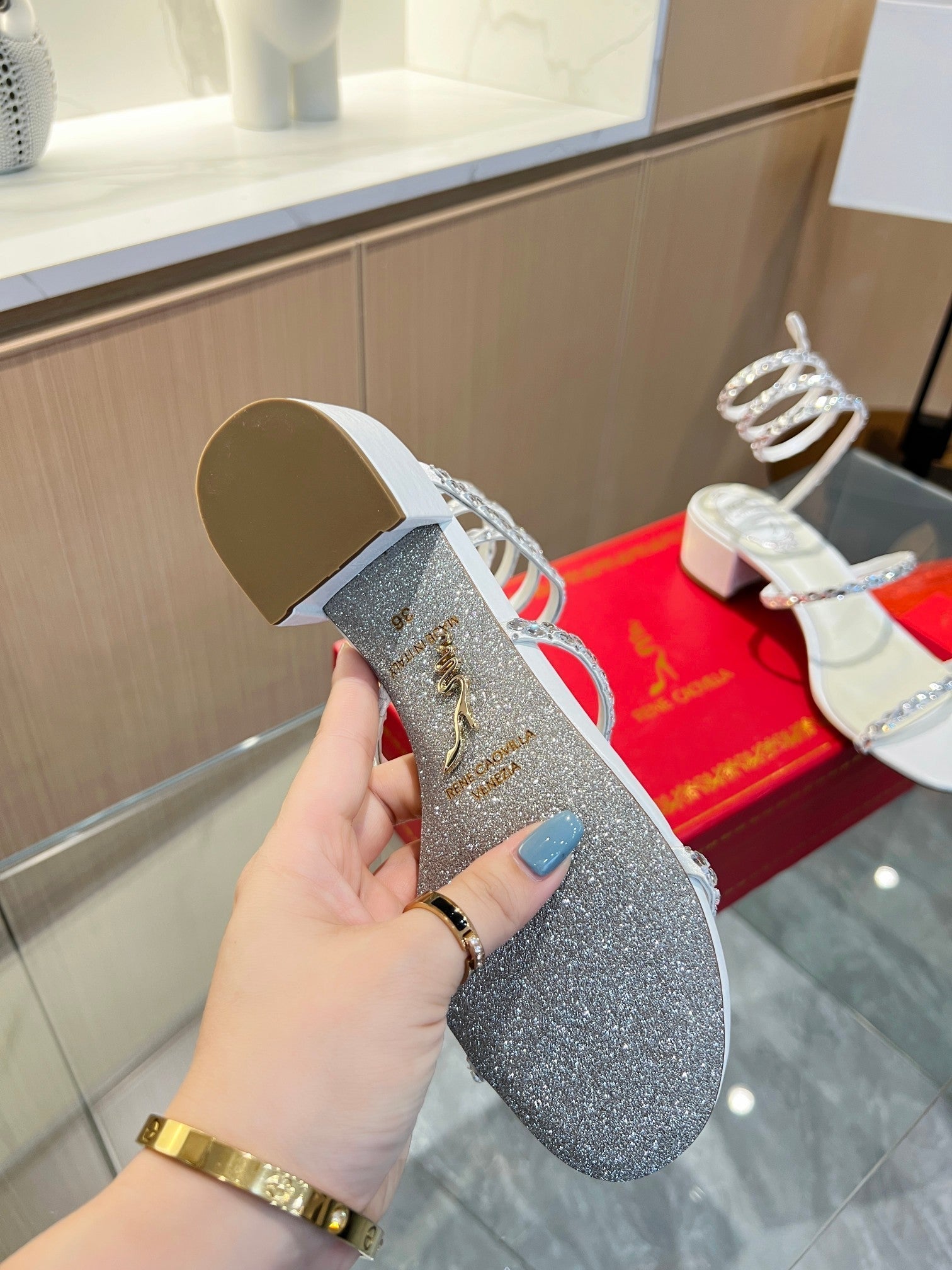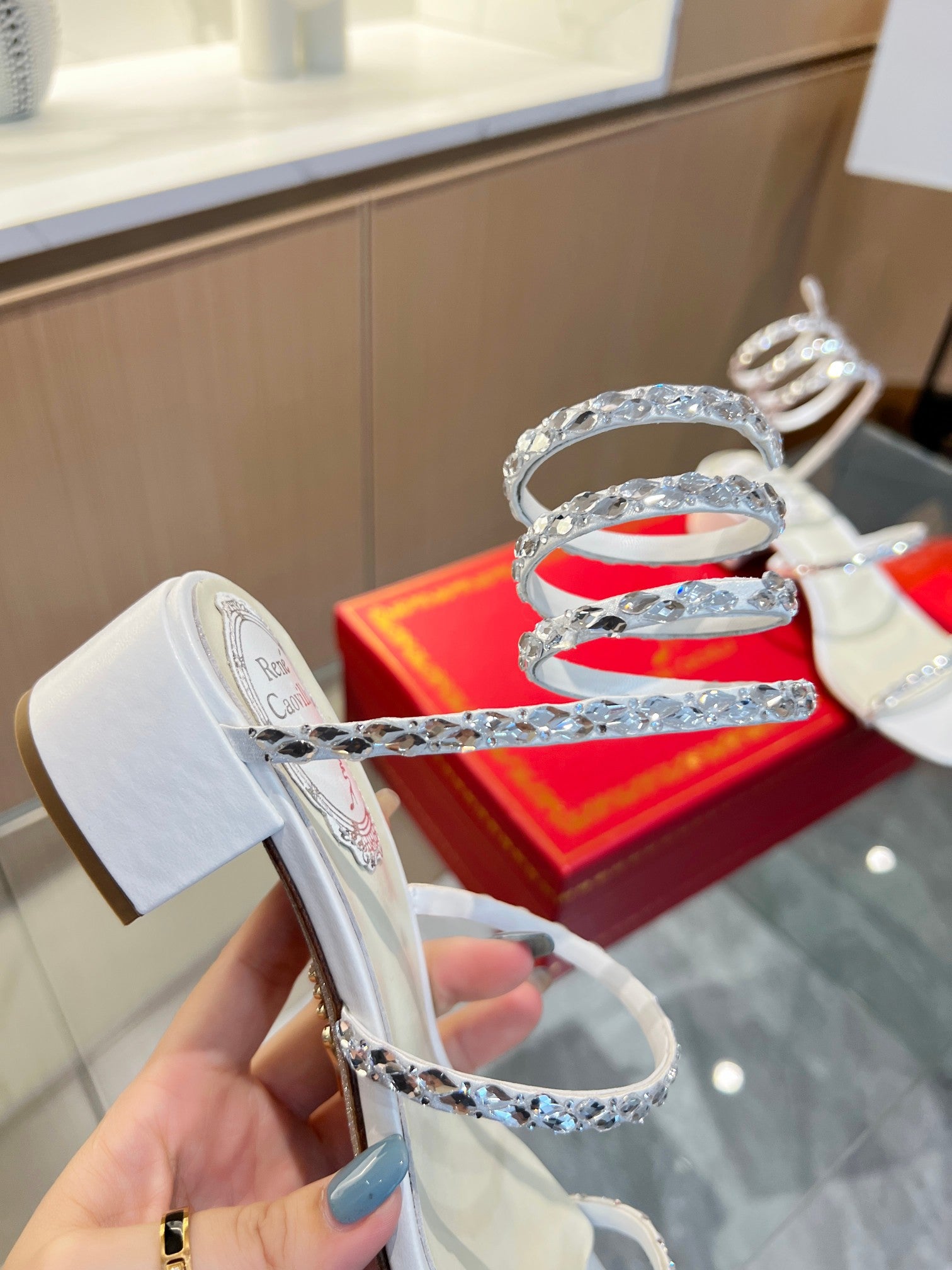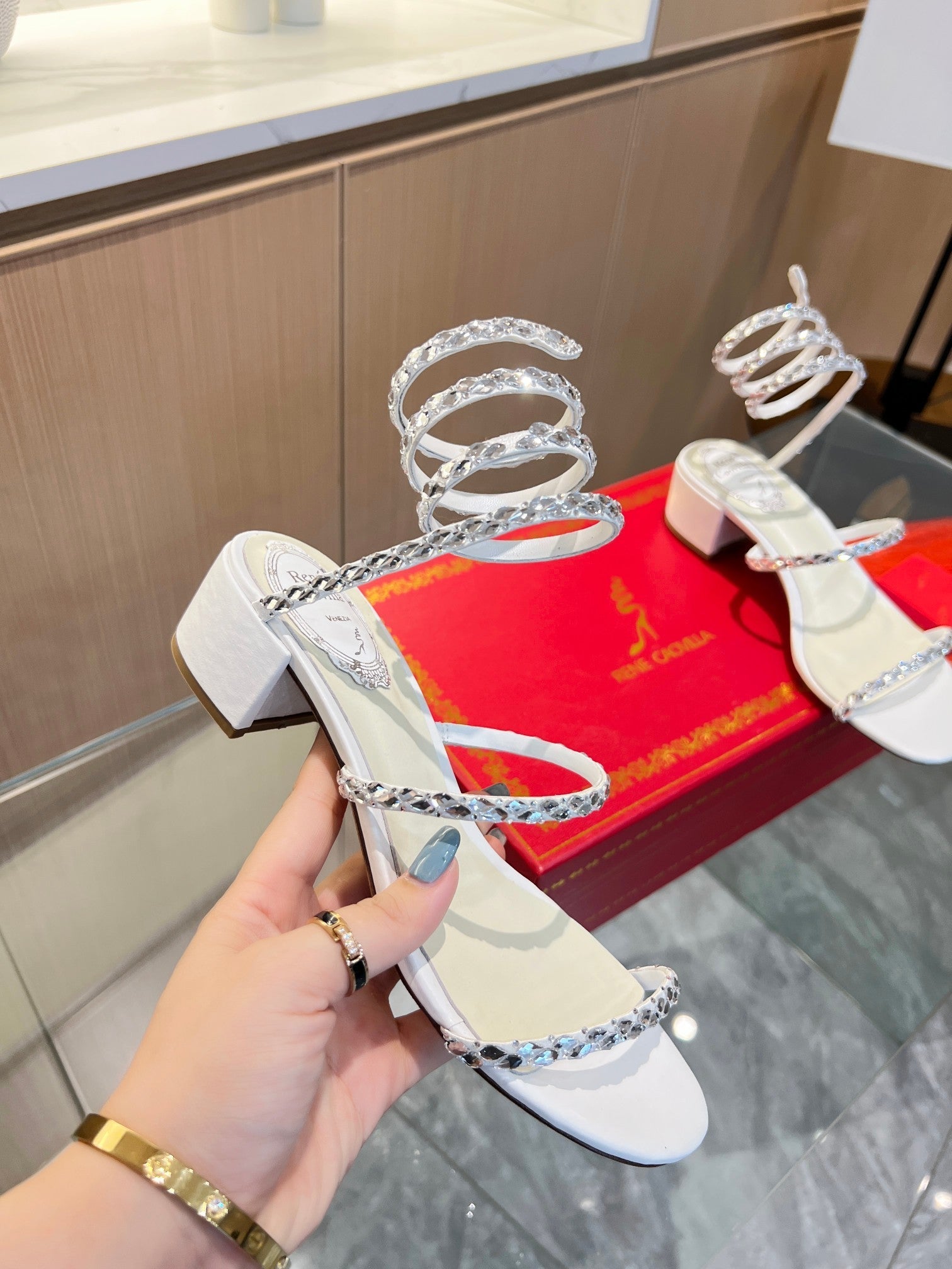 RC Diamond Sandals White Silk Creole Glass Diamond 341982