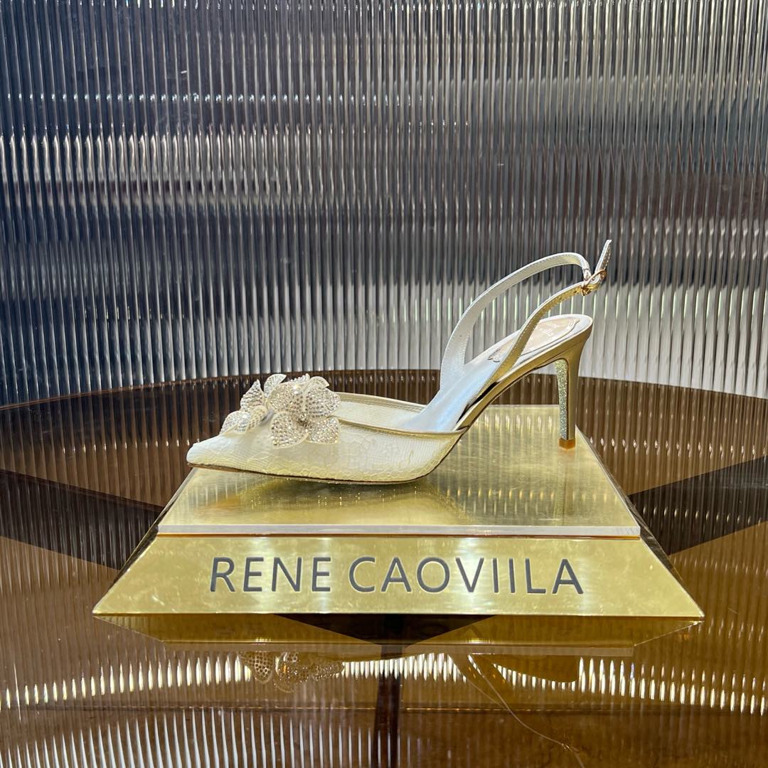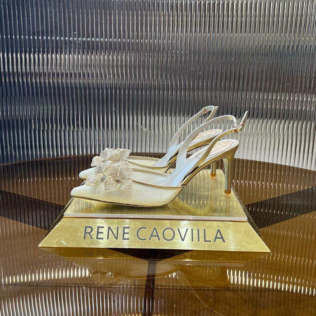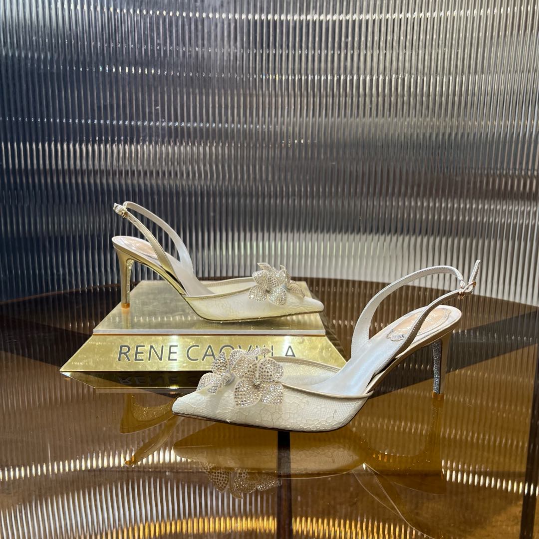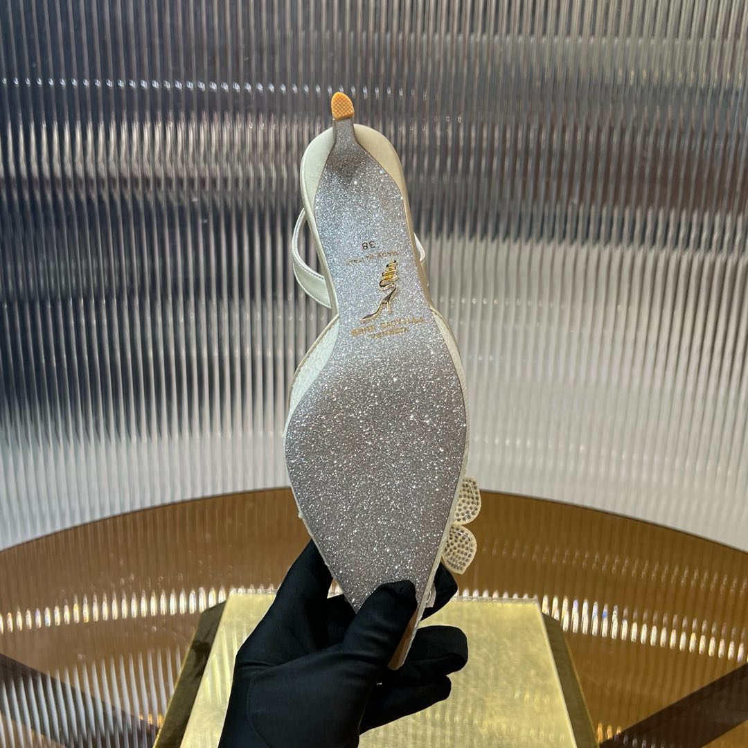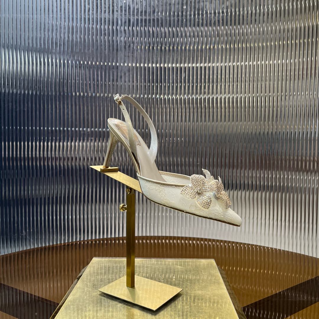 RC 25C Flower-Studded Diamond High-Heeled Sandals Beige Sheepskin 174917