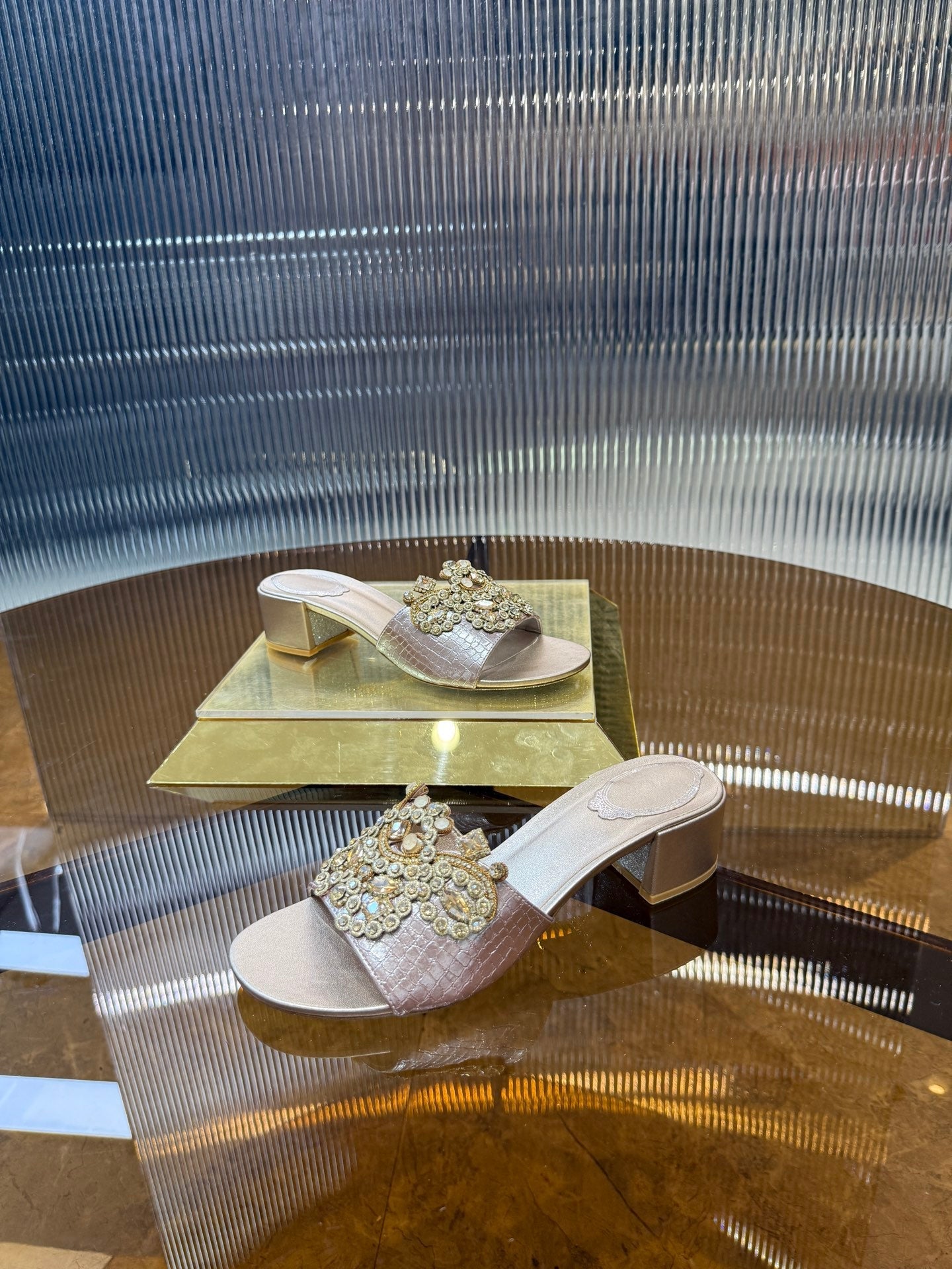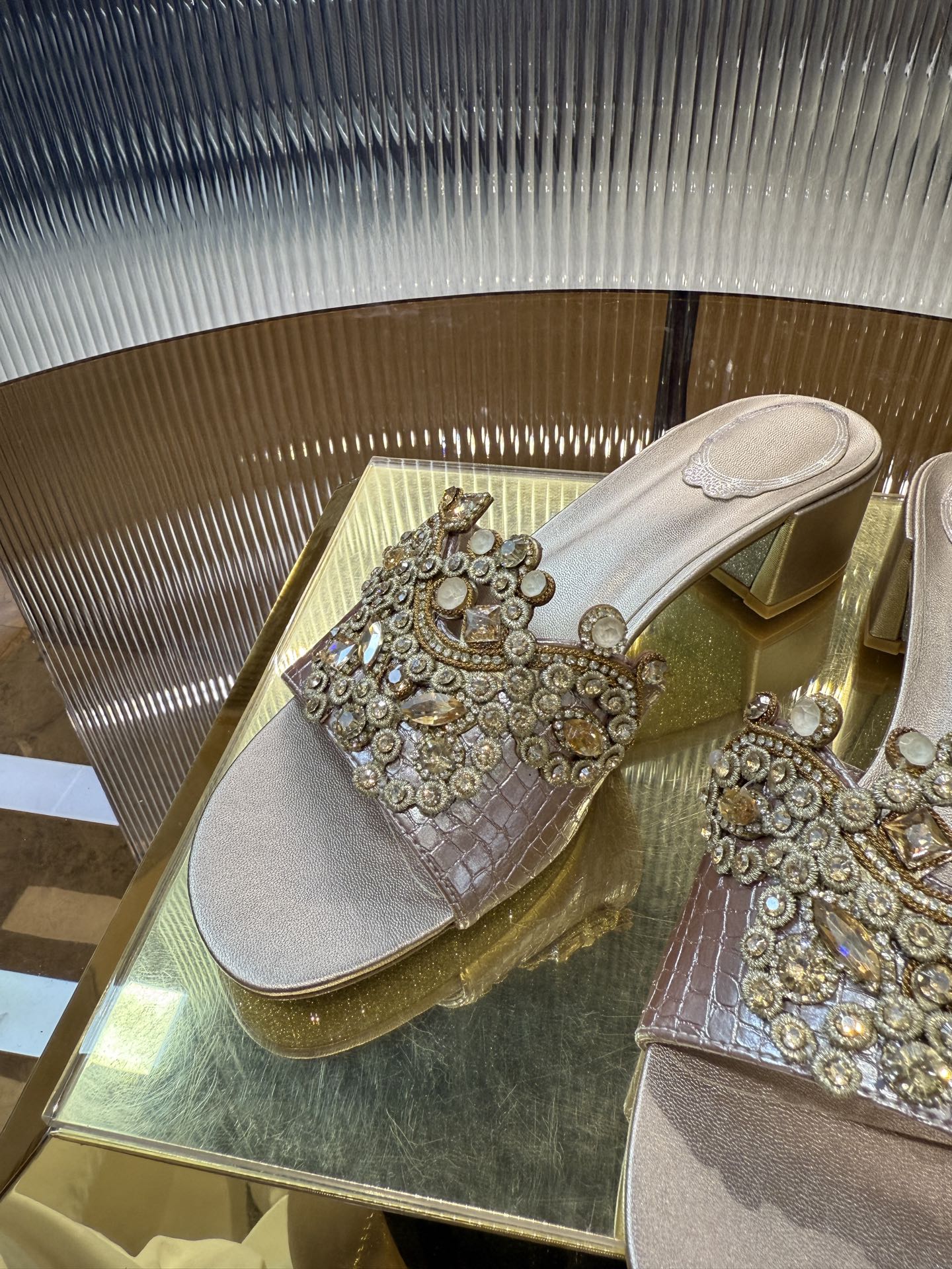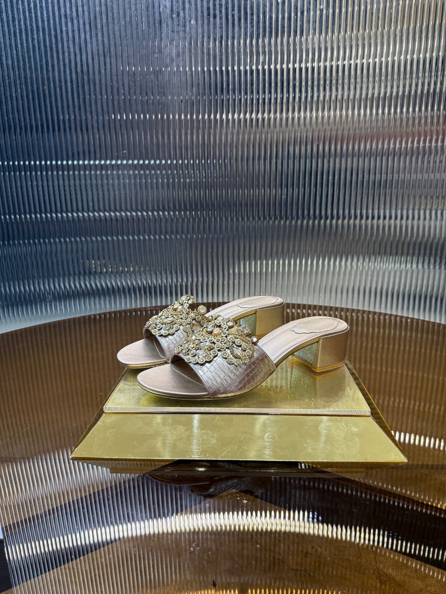 RC 25C Slippers 4.5cm Pink Nude Sheepskin Rhinestones 310639