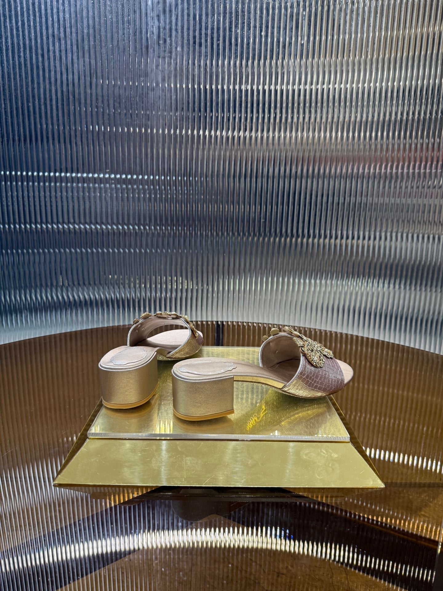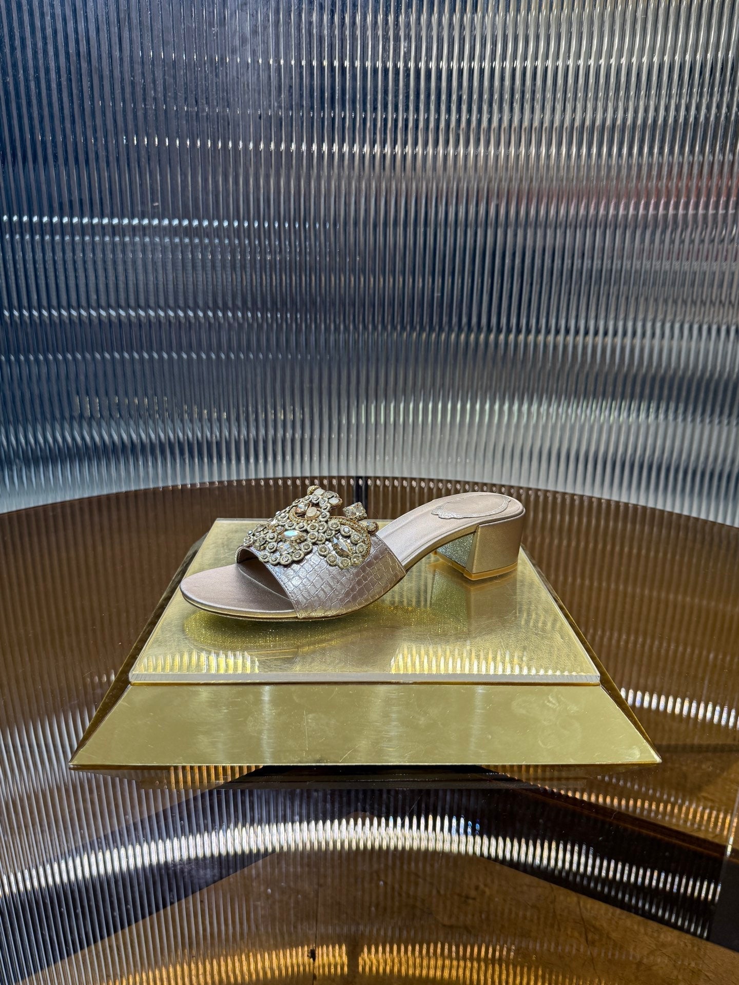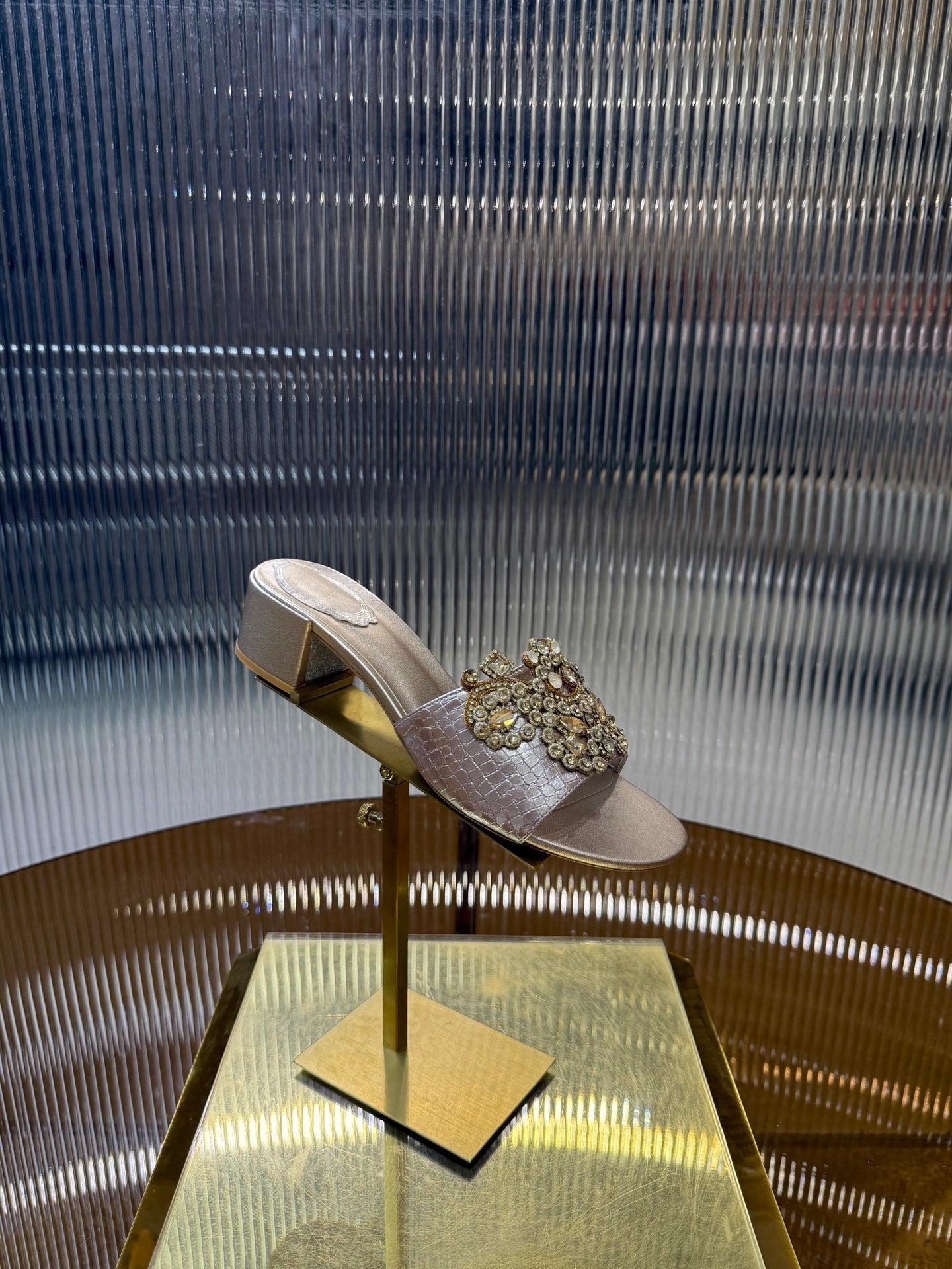 RC 25C Slippers 4.5cm Pink Nude Sheepskin Rhinestones 310639