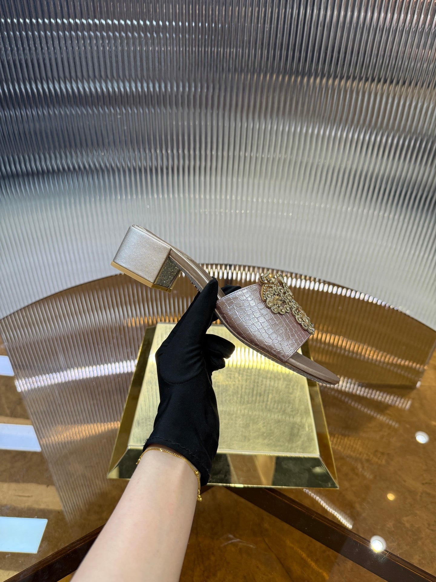 - Material: Sheepskin, Rhinestones