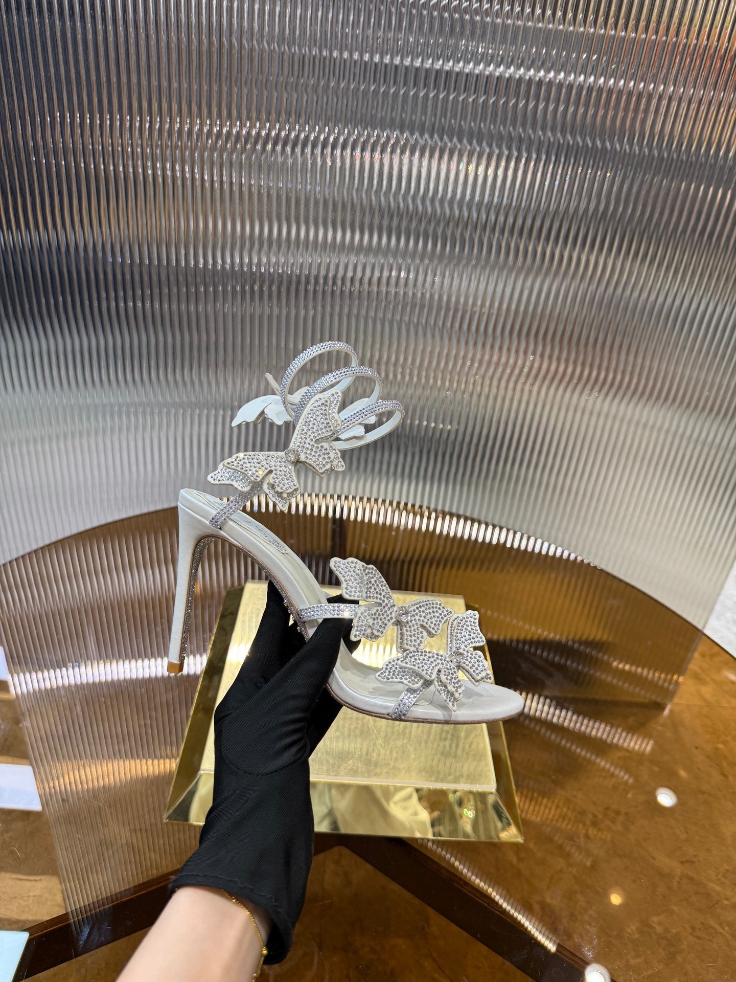 RC 25C Stiletto Sandals White Silk Rhinestone 275775