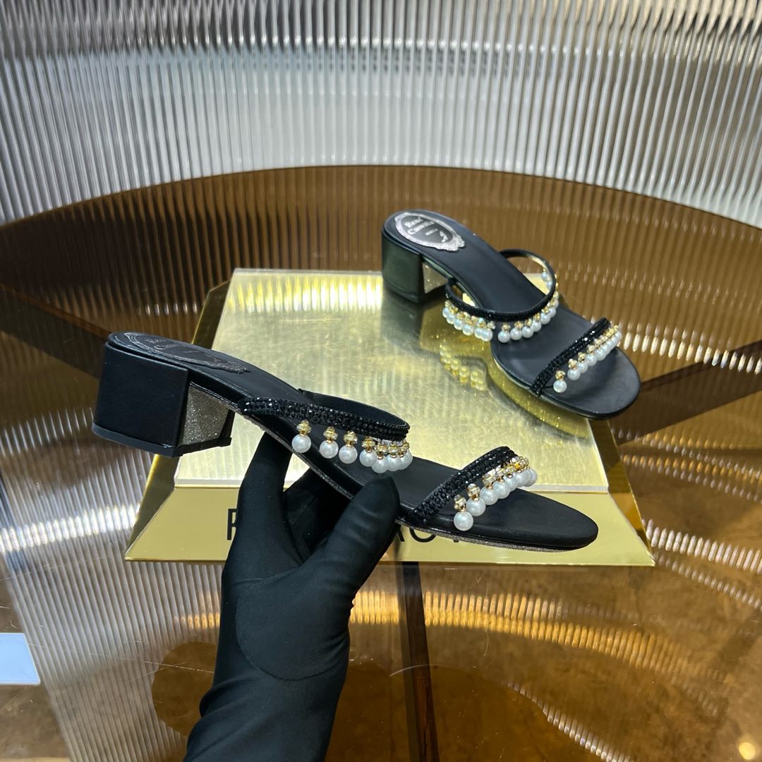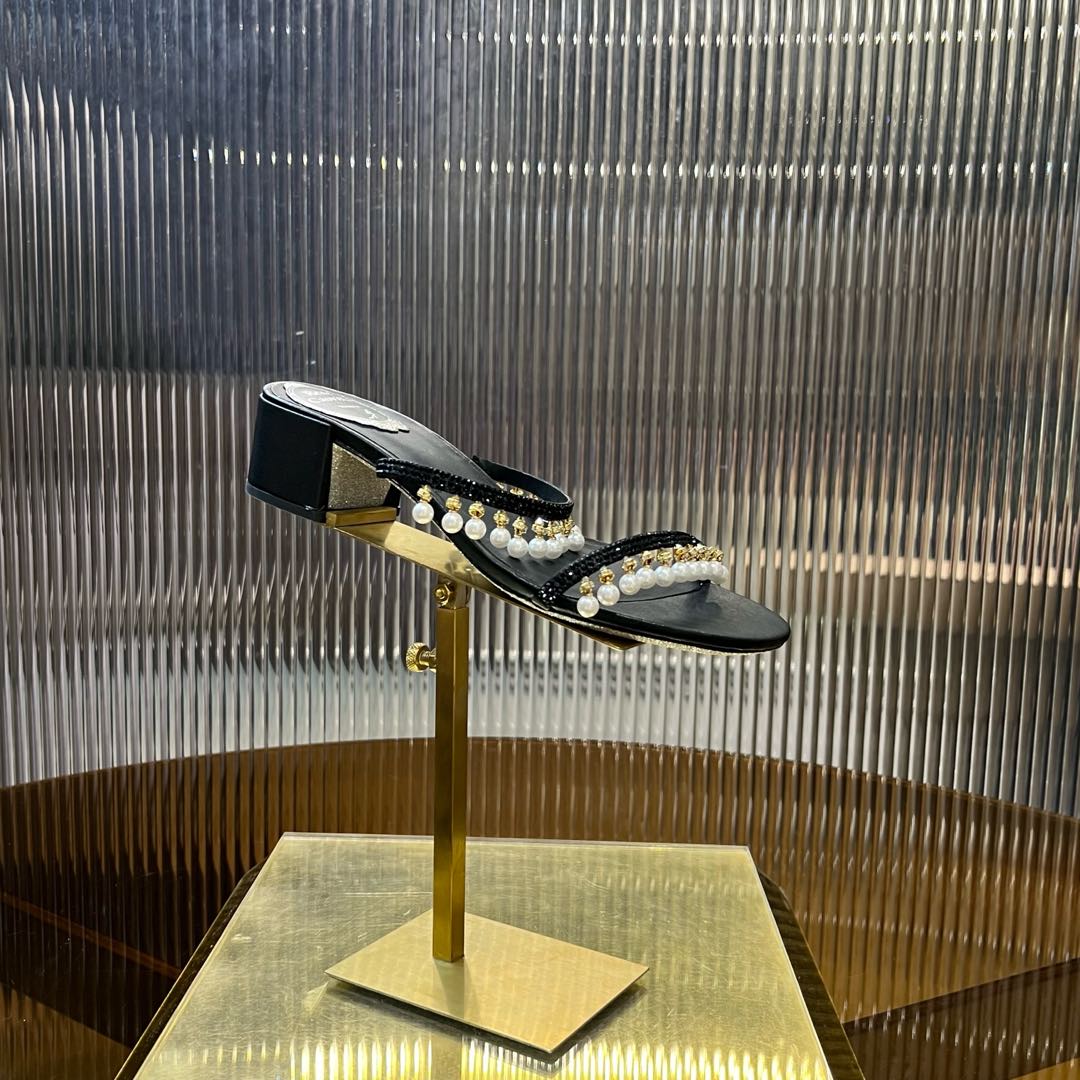 RC Gold Buckle Pearl Crystal Lamp Pendant Sandals 4.5 Black Sheepskin 175004