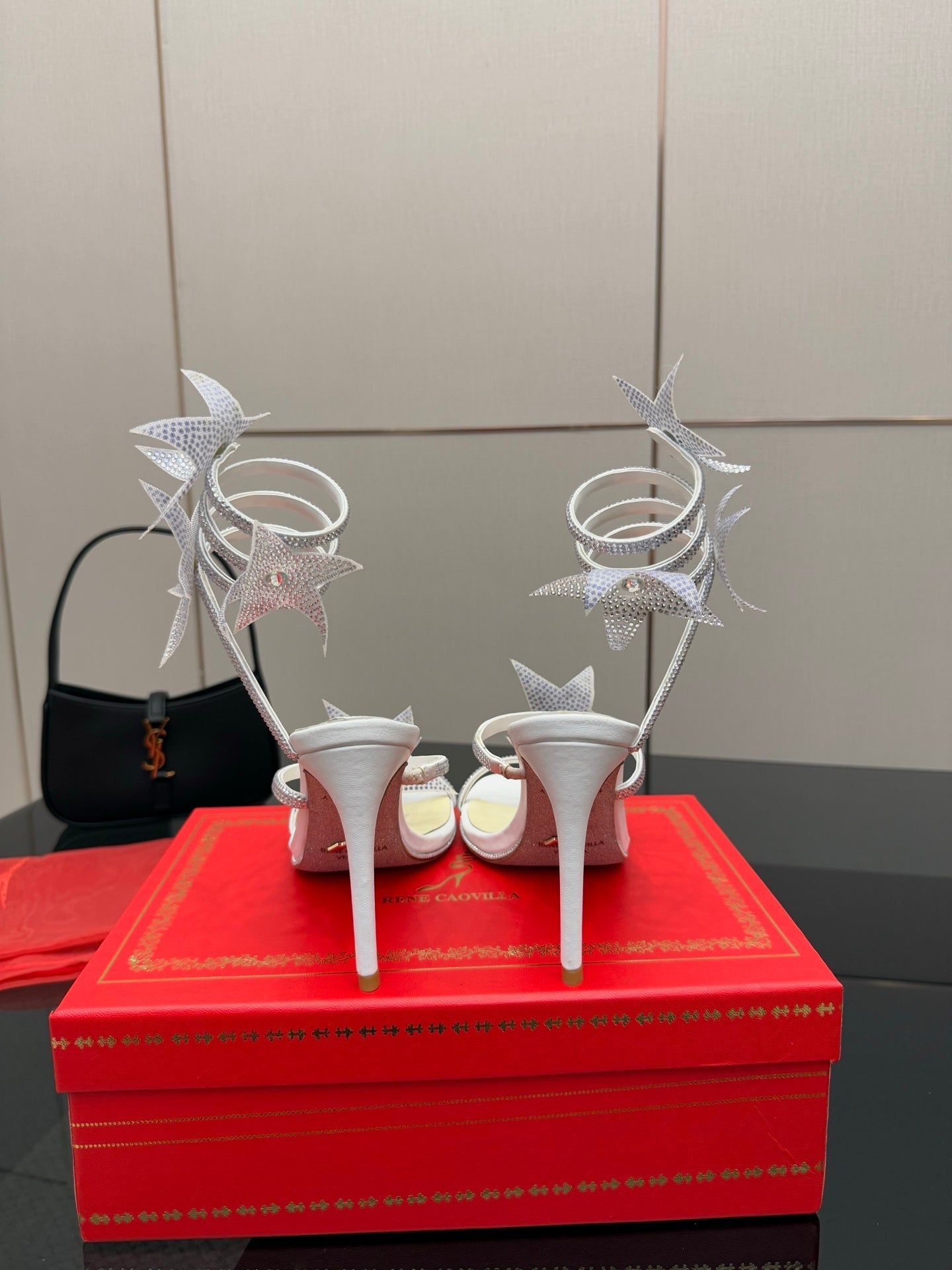 RC Sandals 9.5cm White Rhinestone Silk 302585