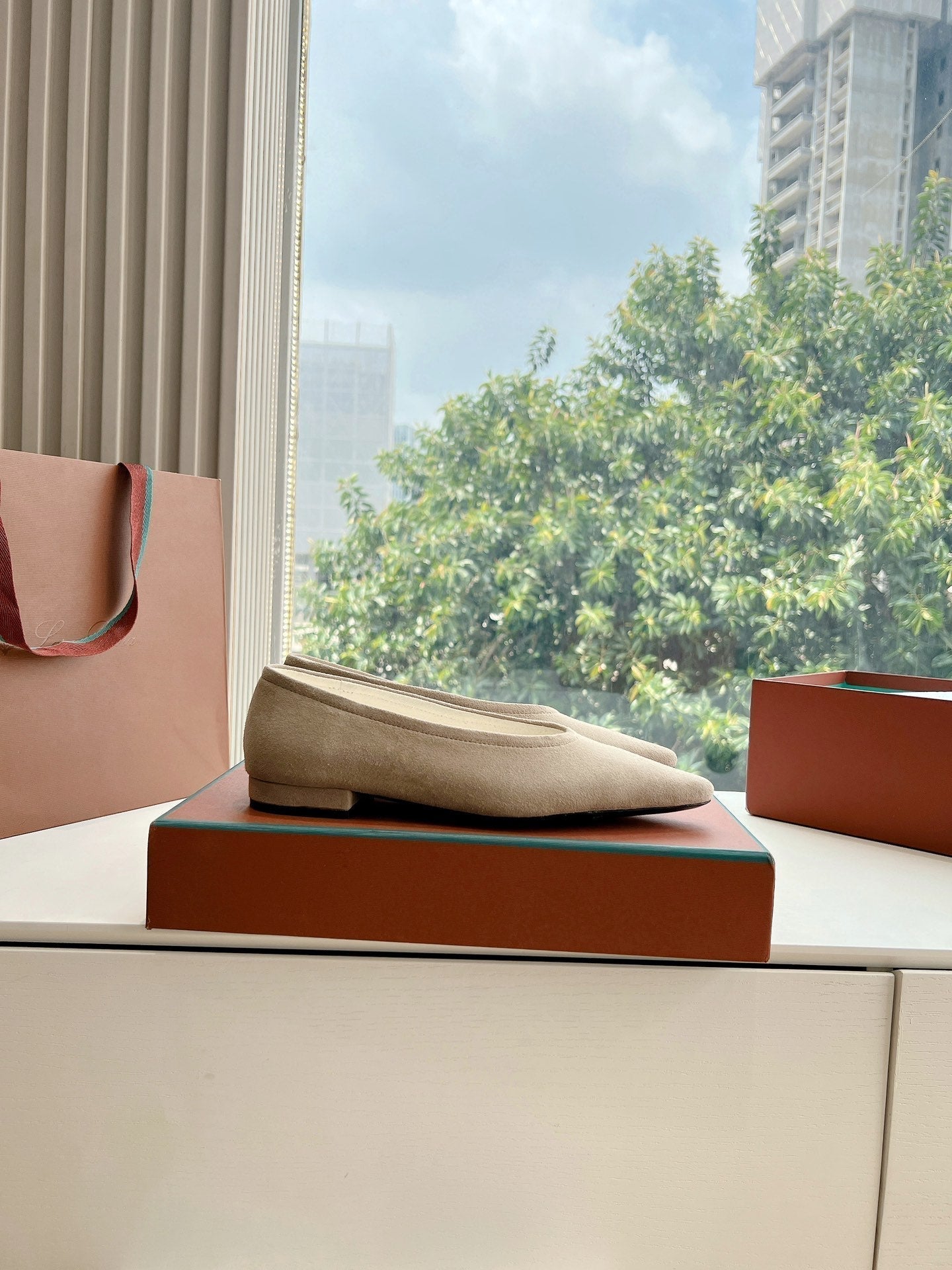 rebecca ballerina flat cream suede