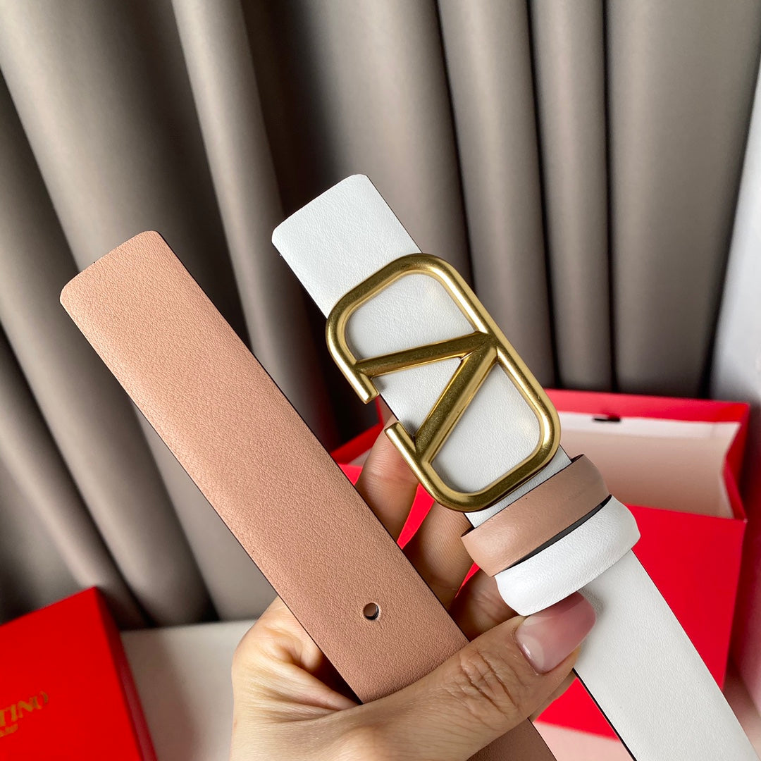 REVERSIBLE VLOGO SIGNATURE BELT IN GLOSSY BEIGE WHITE CALFSKIN GHW 30 MM