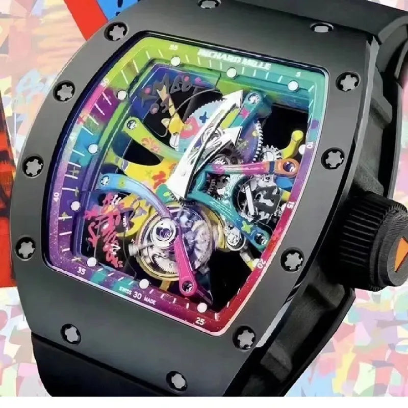 Never before has a work of art thus taken shape on the bridges and baseplate of a watch, becoming a truly integral part of the timepiece. Richard Mille and Kongo succeeded in taking an art essentially associated with large-scale urban murals and translating it for the horological world of micromechanics and precision, thereby making a leap from city walls to bridges, baseplates and sapphire dials of watchmaking.