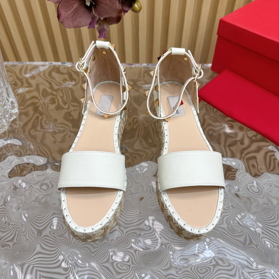 Rockstud Espadrille 45mm White leather sandals