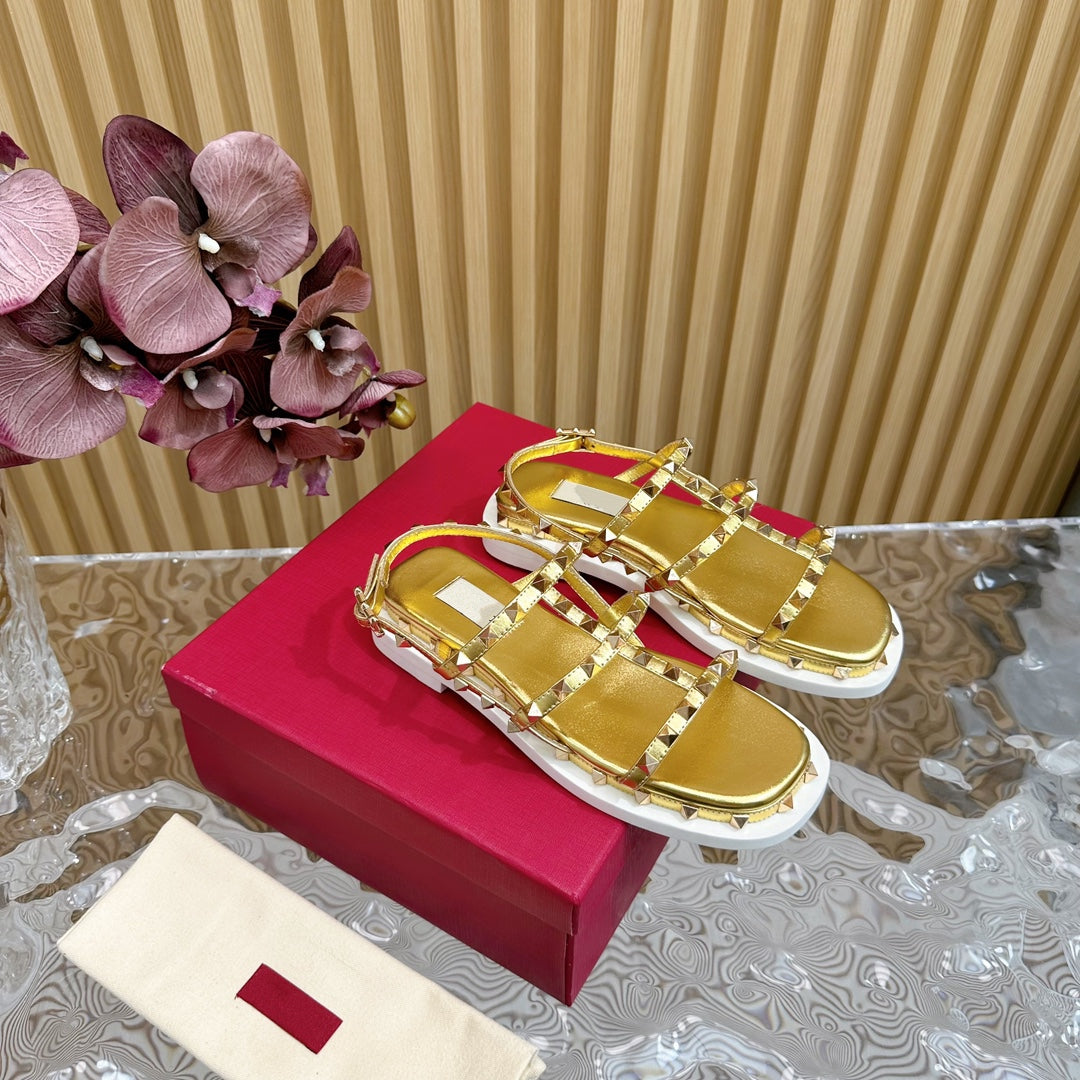 Rockstud M-Way Platform Sandal Gold Leather