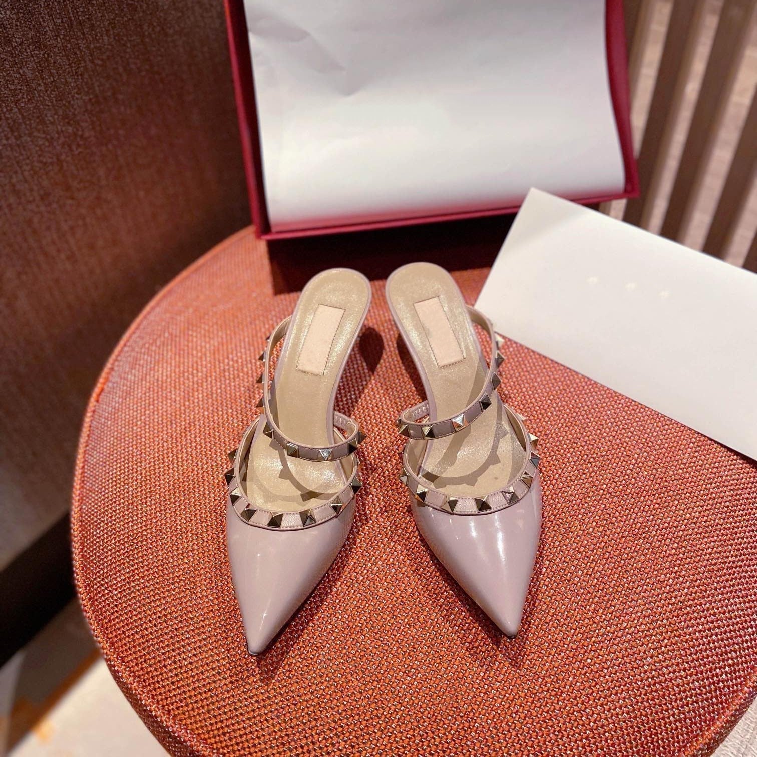 Rockstud Slingback Ballerina Flats Rose Cannelle Leather Cross Straps