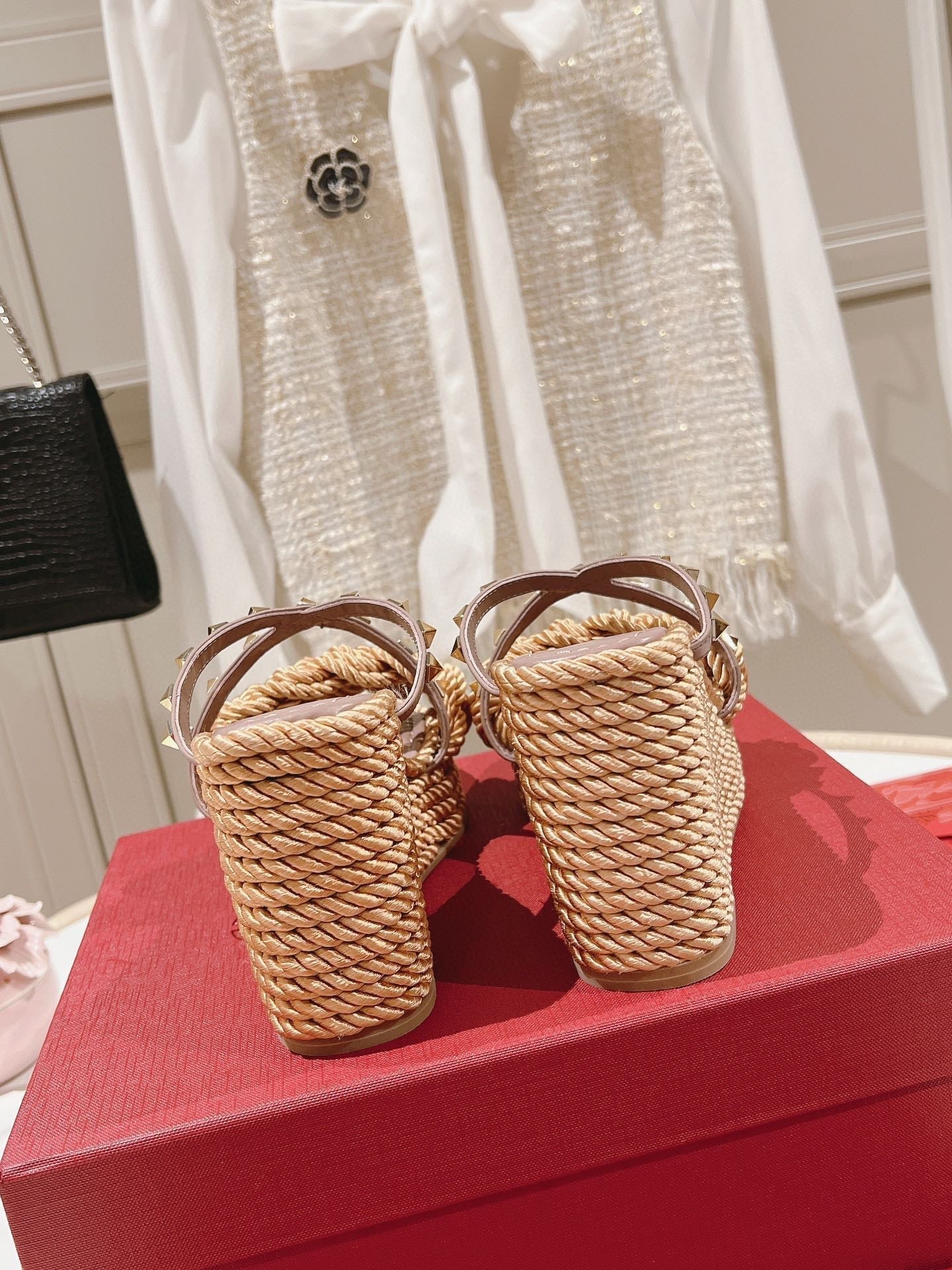- Nylon rope wrapped wedge heel-10cm waterproof platform-3cm