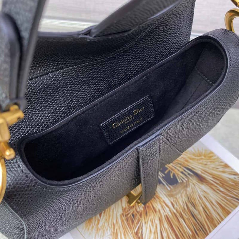 Maria Grazia Chiuri once again brings a new interpretation of the classic Saddle saddle bag. Each side of the handle has a “CD” logo, and another Saddle flap and a “D”-shaped stirrup magnetic buckle bring traditional style. This black grained calfskin handbag is decorated with vintage gold-toned hardware. Saddle saddle bag can be carried or carried on the shoulder, and can be matched with different shoulder straps.