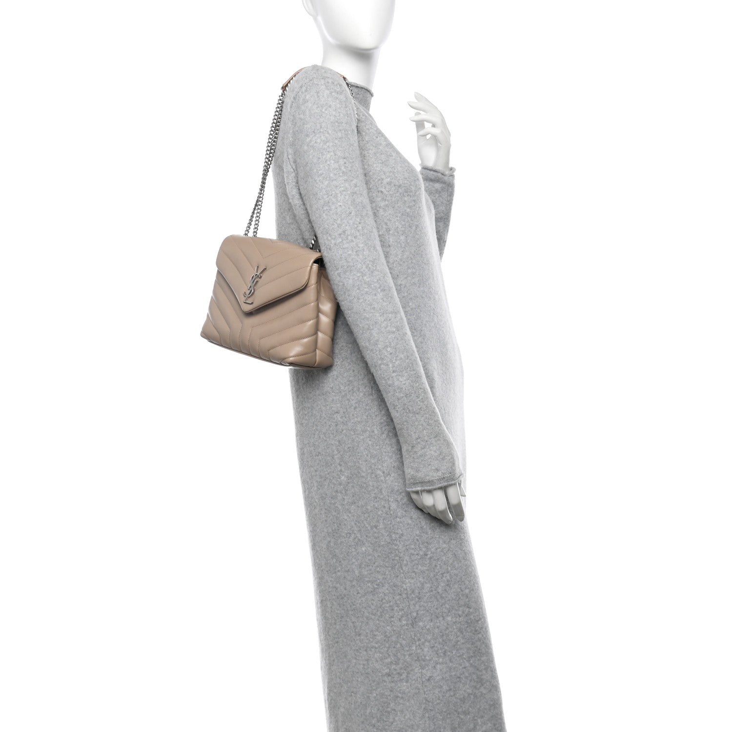 Calfskin Y Quilted Monogram Small Loulou Chain Satchel Dark Beige