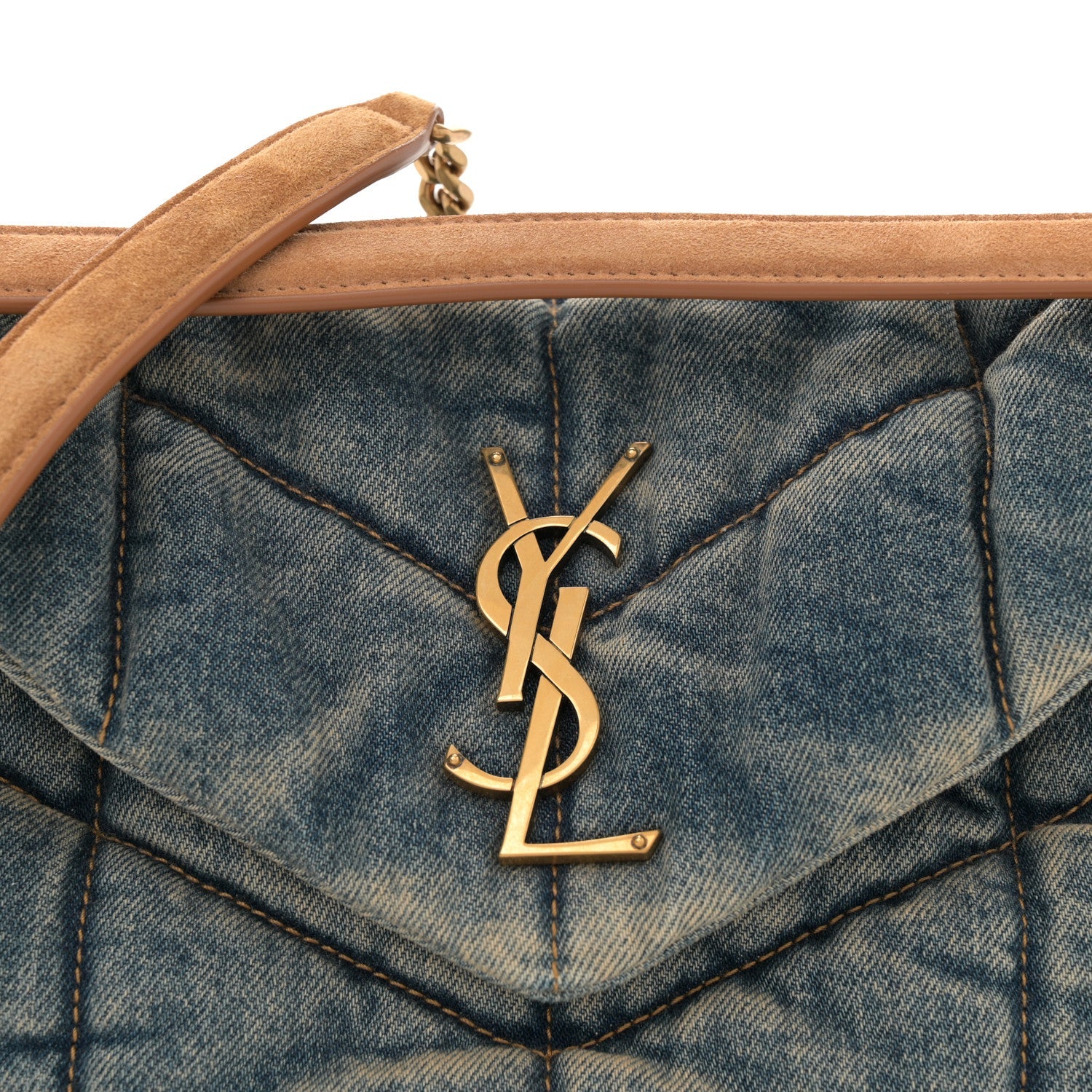 Denim Quilted Small Loulou Puffer Monogram Chain Satchel Blue Cinnamon