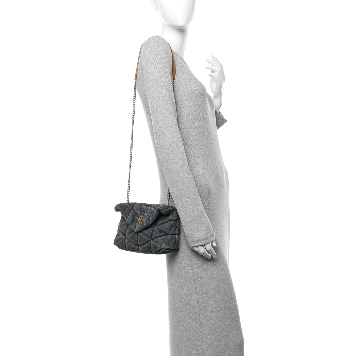 Denim Quilted Toy Loulou Puffer Monogram Chain Satchel Blue Cinnamon