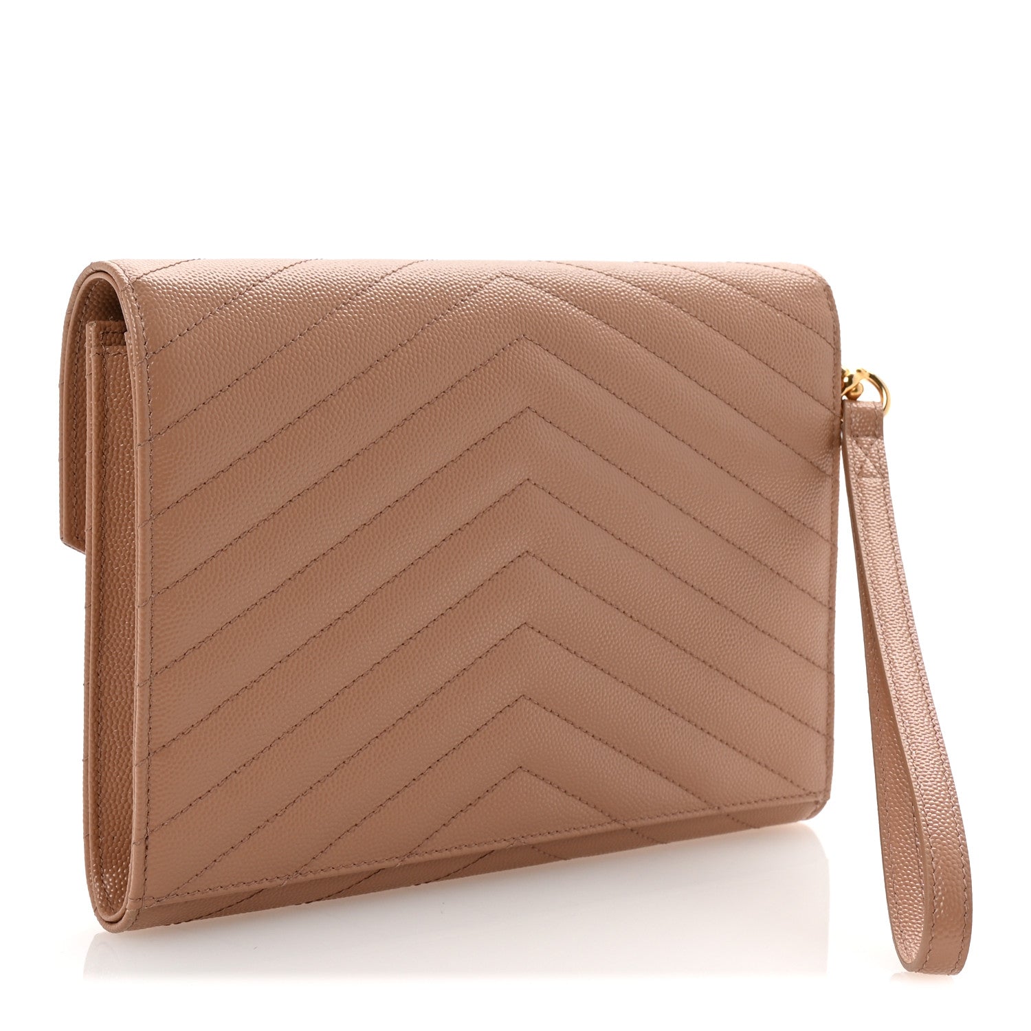 Grain De Poudre Matelasse Chevron Monogram Envelope Vintage Peach
