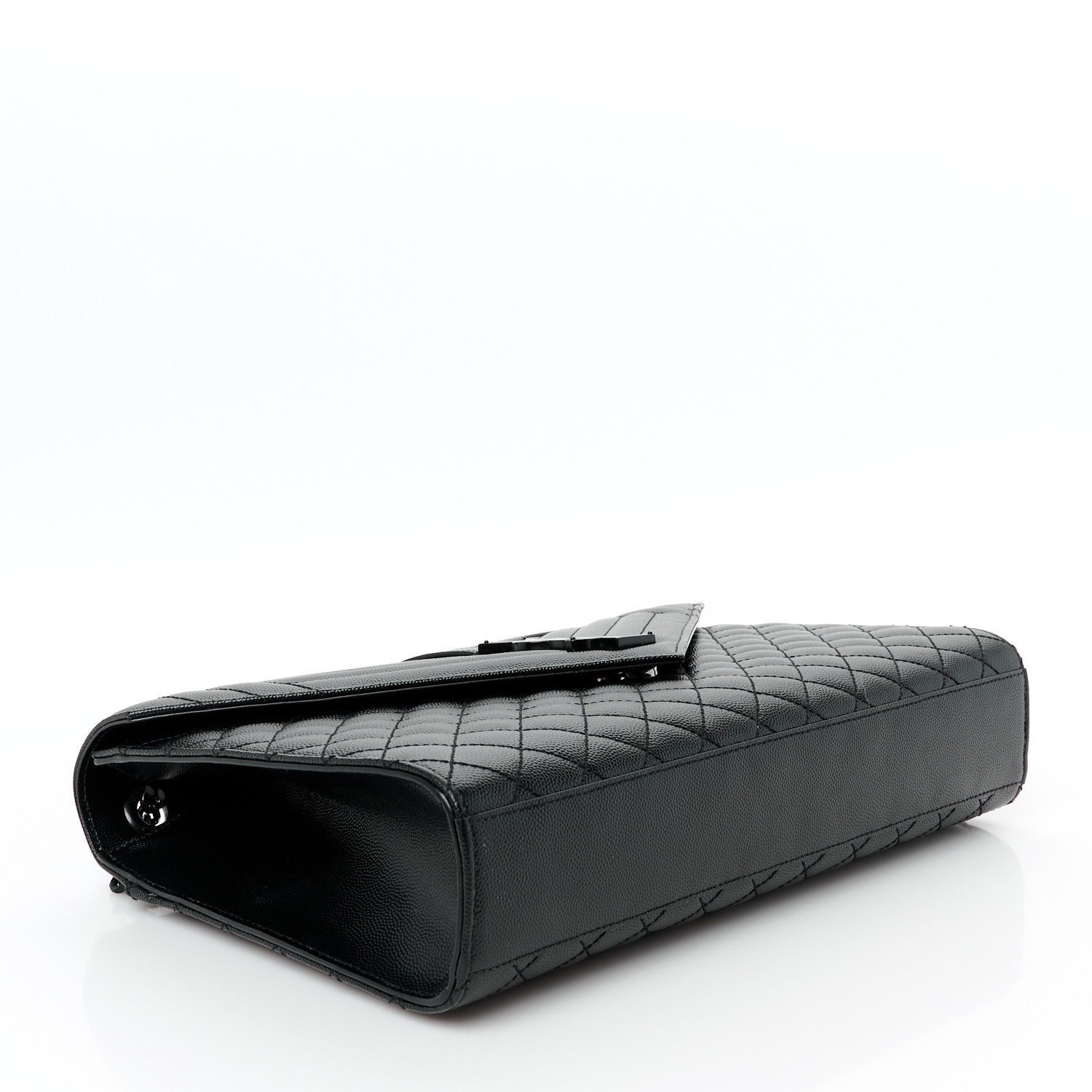 Grain De Poudre Textured Mixed Matelasse Large Triquilt Monogram Monochrome Satchel Black