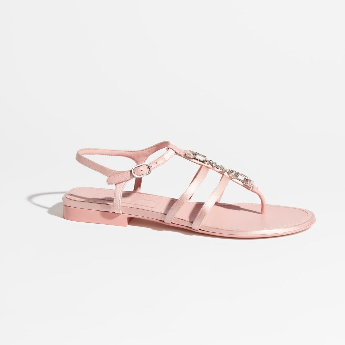 sandals light pink satin metal