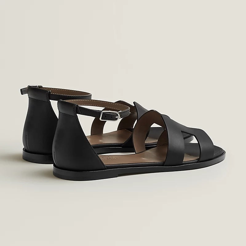 • Material: Sandal in calfskin with straight cut edges, "H" cut-out detail and thin ankle strap.
