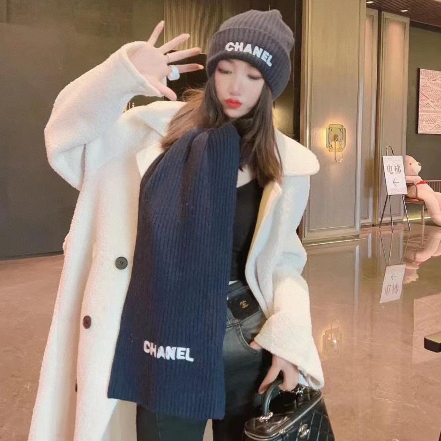 SET HAT AND SCARF IN BLACK WOOL 422599