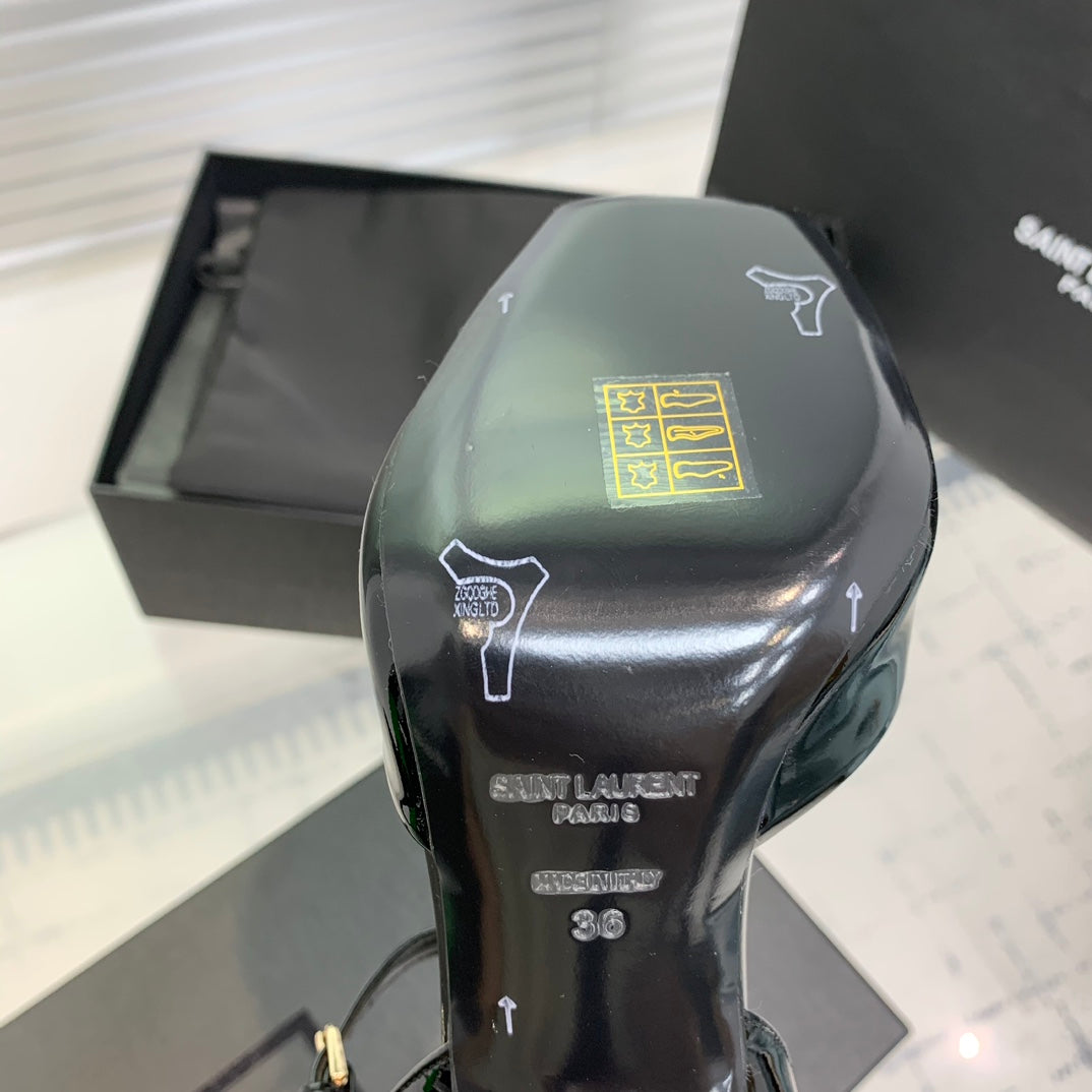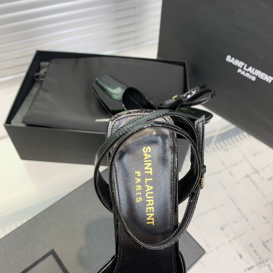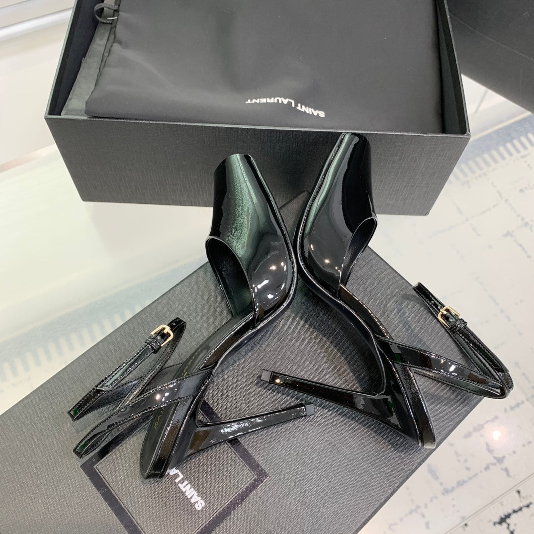 SL FISH MOUTH SANDAL PUMP BLACK POLISHED CALFSKIN