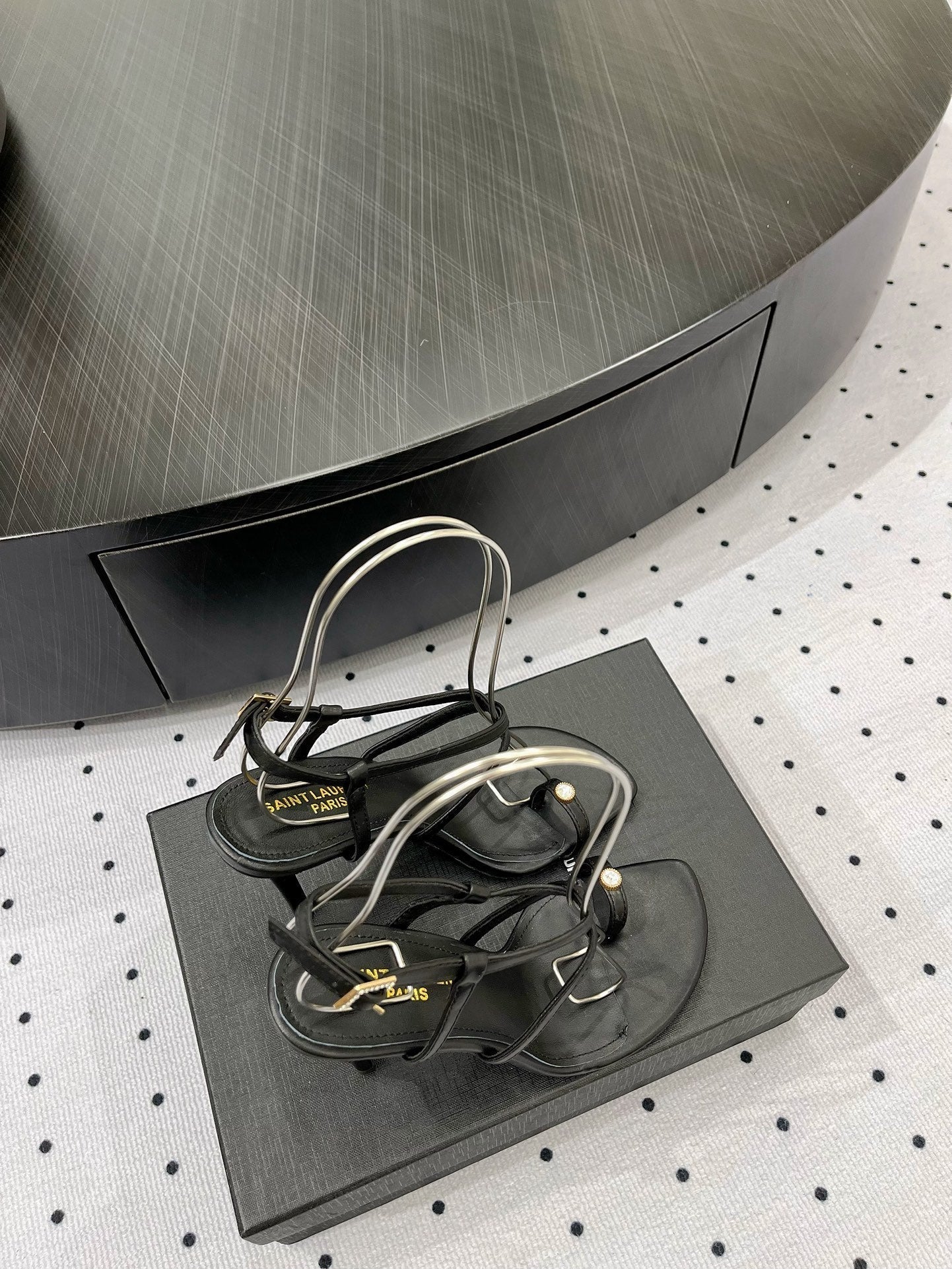 SL LINDEN HEELED SANDALS BLACK CALFSKIN
