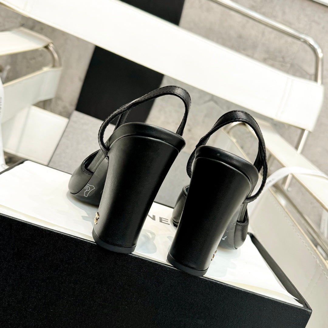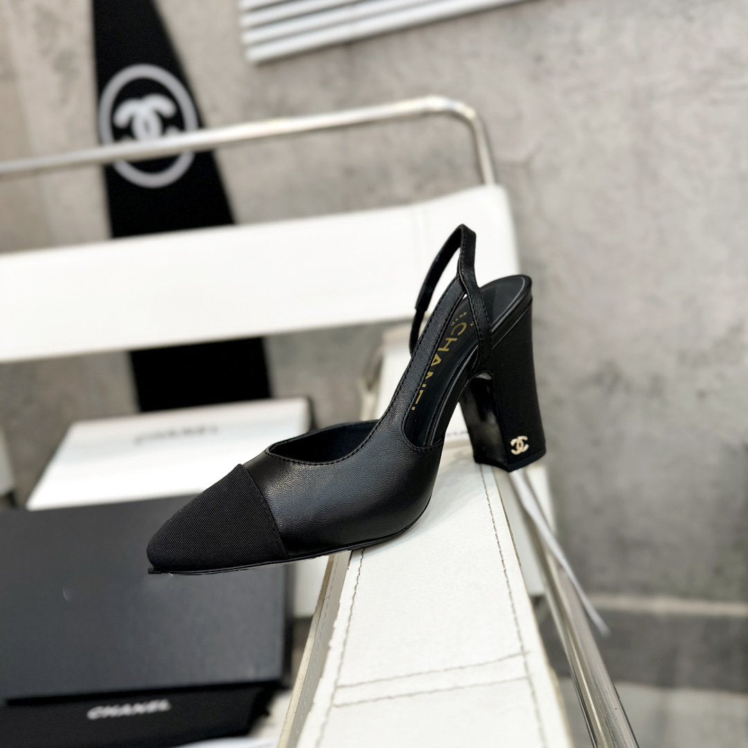 slingback 90 black calfskin grosgrain