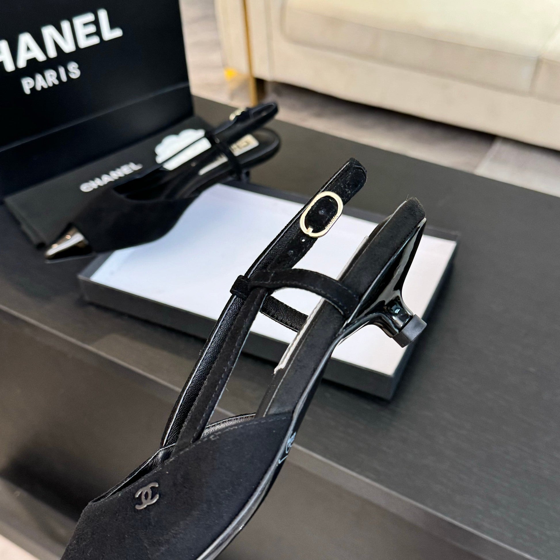 slingbacks 35 pointed patent toe black suede