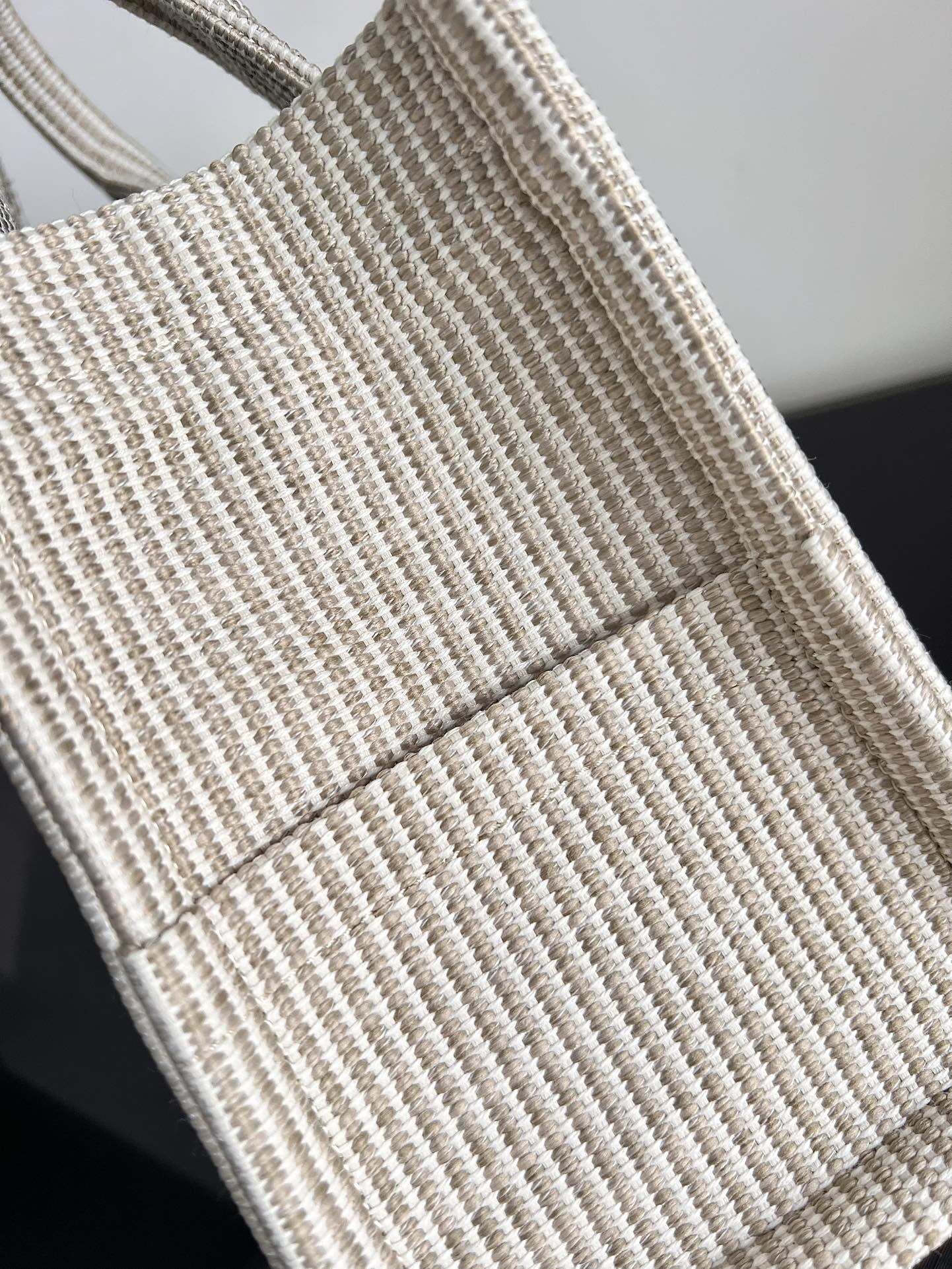SMALL CABAS THAIS 25.5 CREAM STRIPED FABRIC TRIOMPHE CALFSKIN