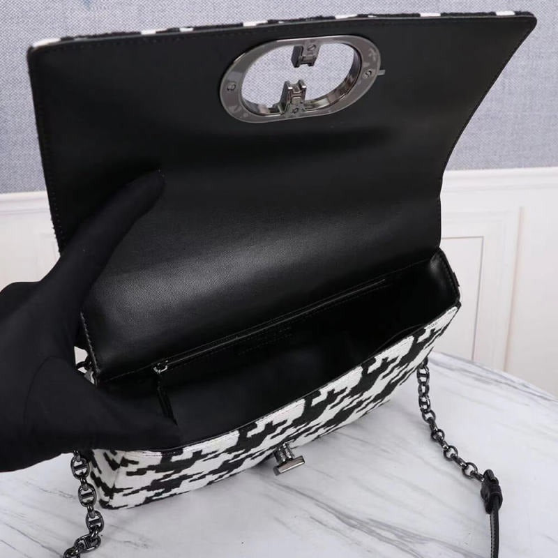 Adjustable, removable ‘CD’ chain link strap with ‘Christian Dior’ military-inspired buckle