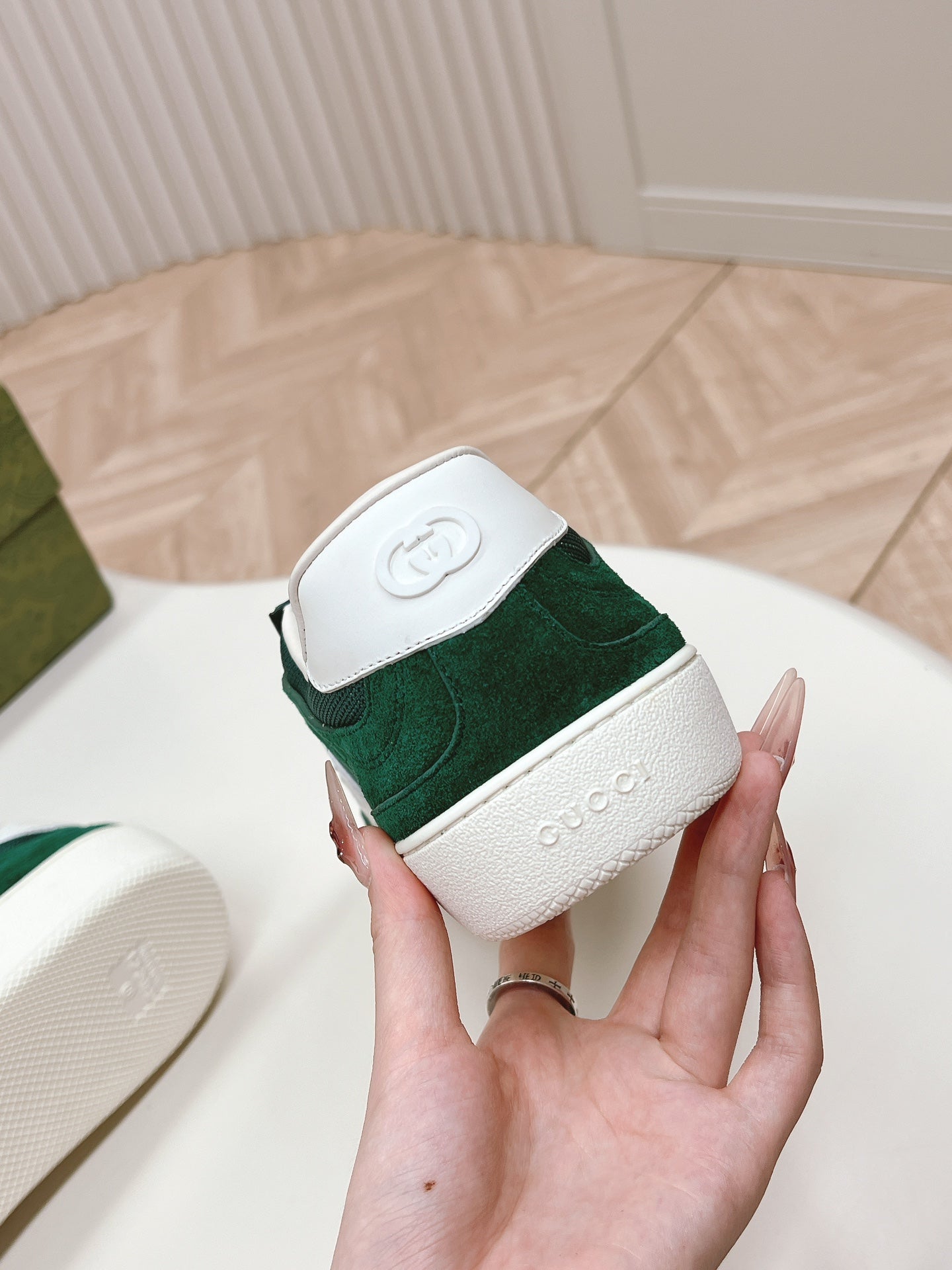 SNEAKER WITH INTERLOCKING G IN GREEN FOREST SUEDE AND MESH