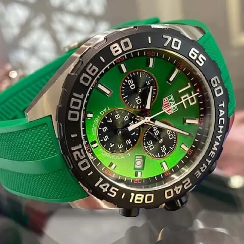 The energetic and brisk TAG Heuer Formula 1 is perfect for the fast-paced life. The green sunray brushed dial and matching strap are ready to race.