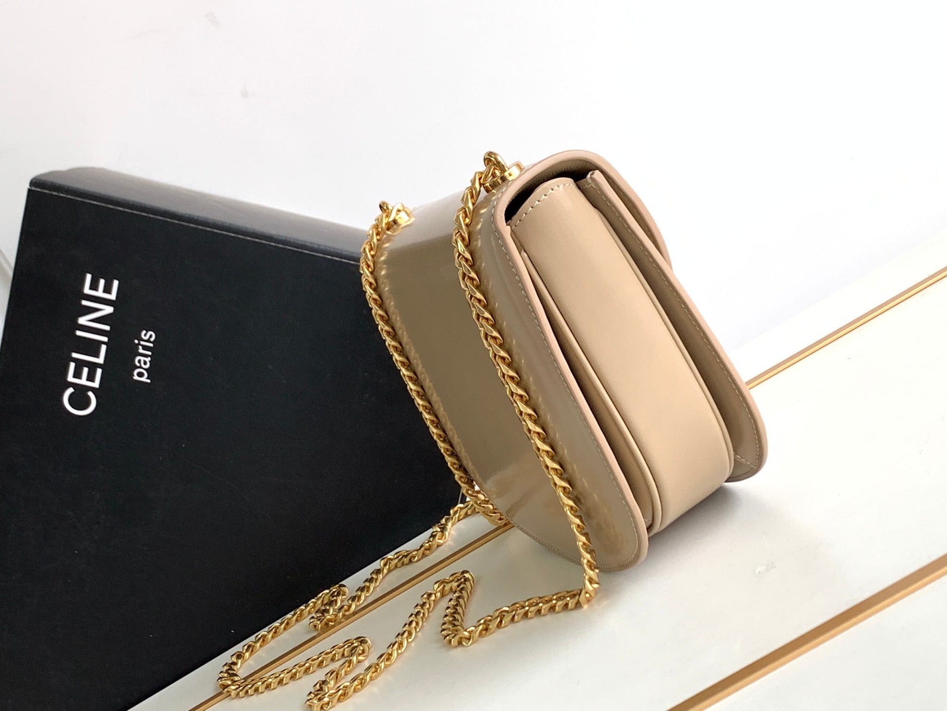 teen besace triomphe 18.5 beige calfskin with chain