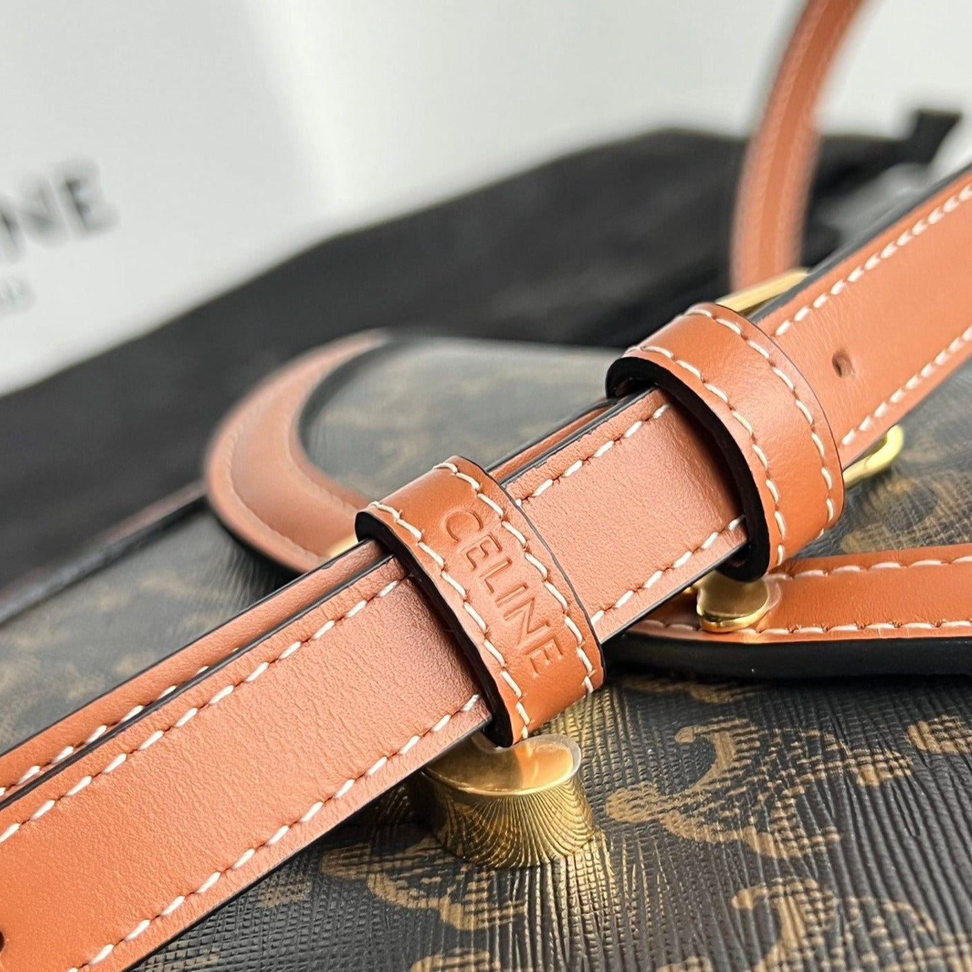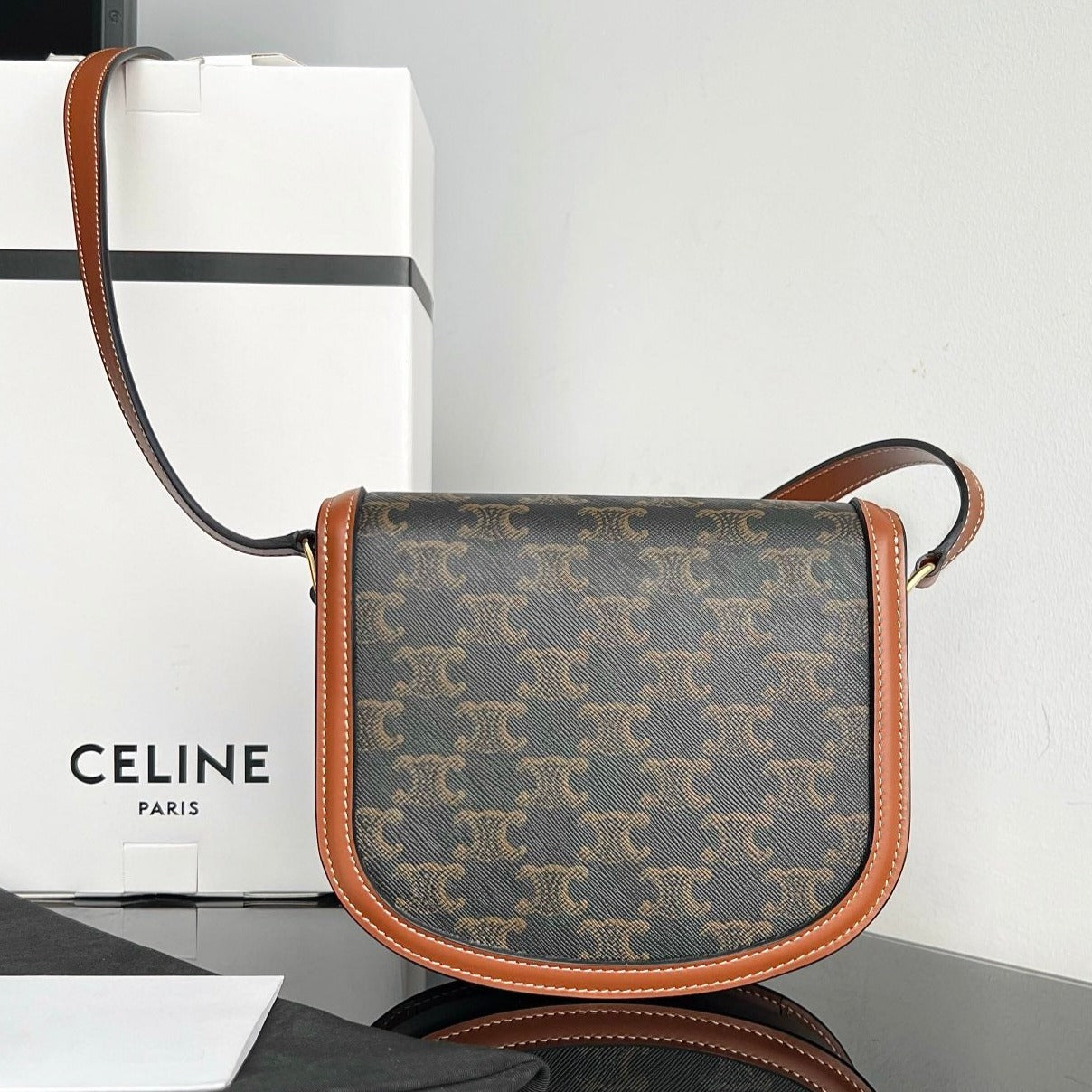 TRIOMPHE SHINY CALFSKIN HANDBAG 18 BLACK PARTERN
