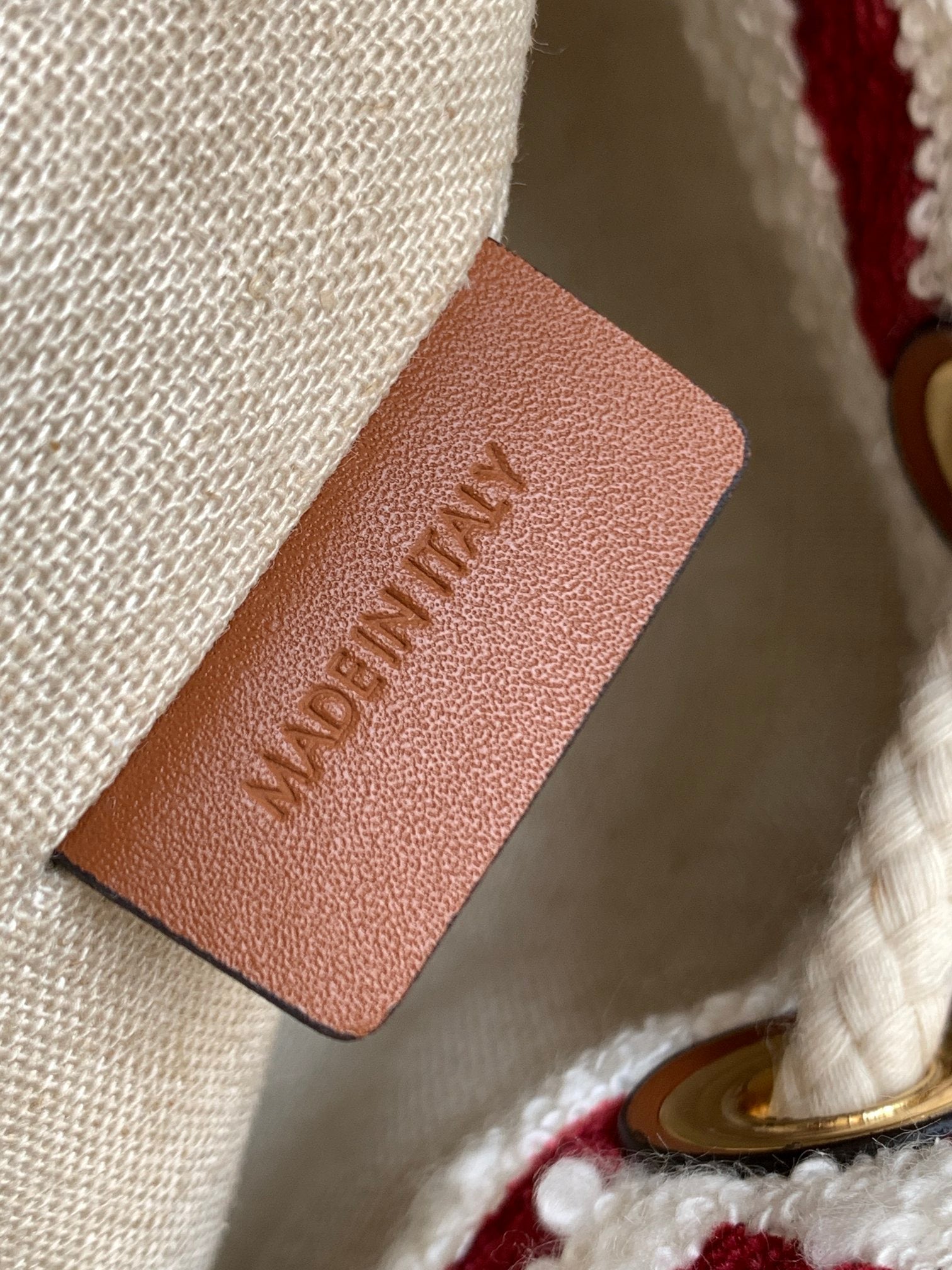 Material: fabric lining, hand carry, drawstring closure, leather handle length 13 cm