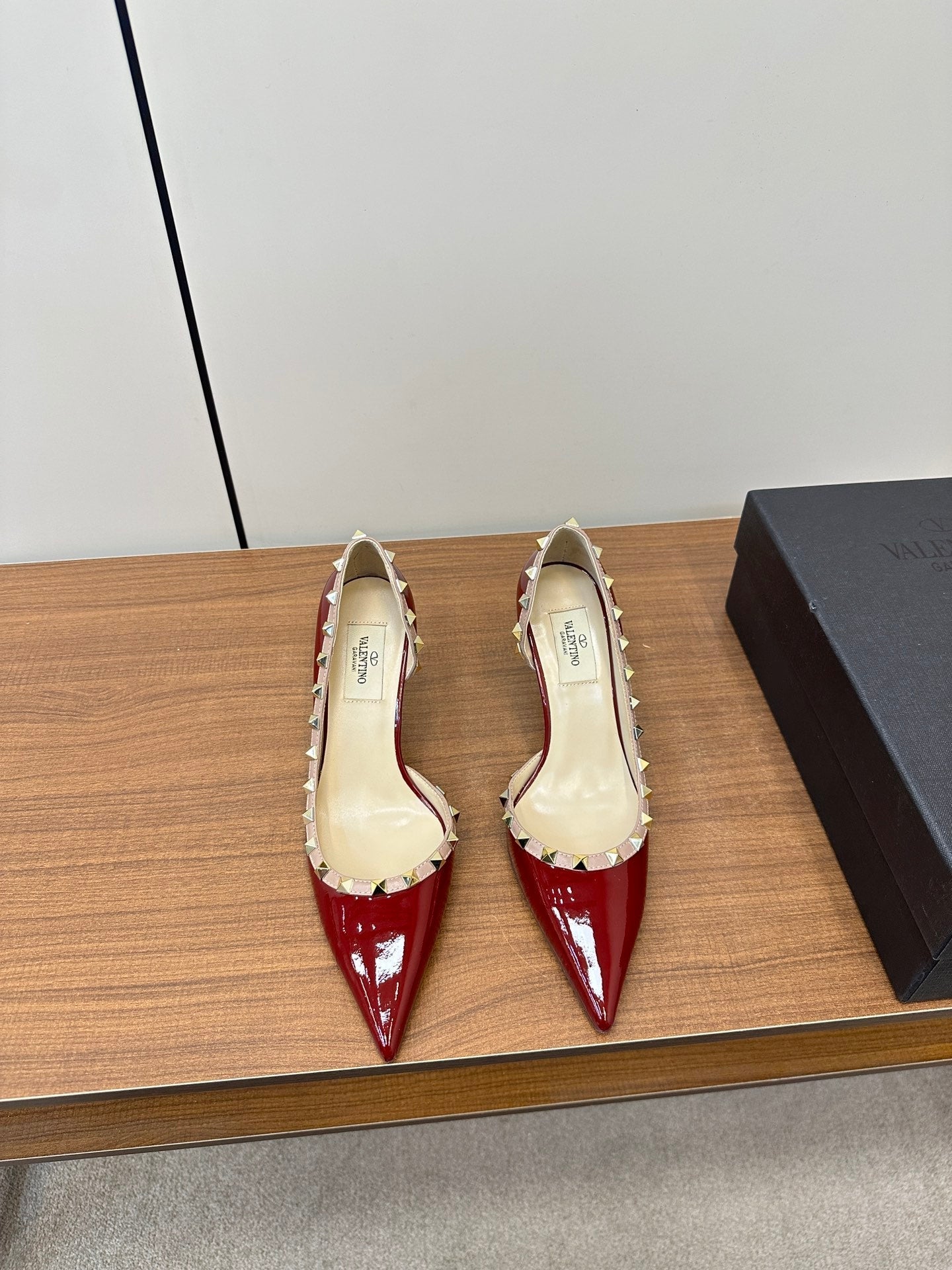 Valentino Red Rockstud D'Orsay Pumps 95mm Cowhide 989893