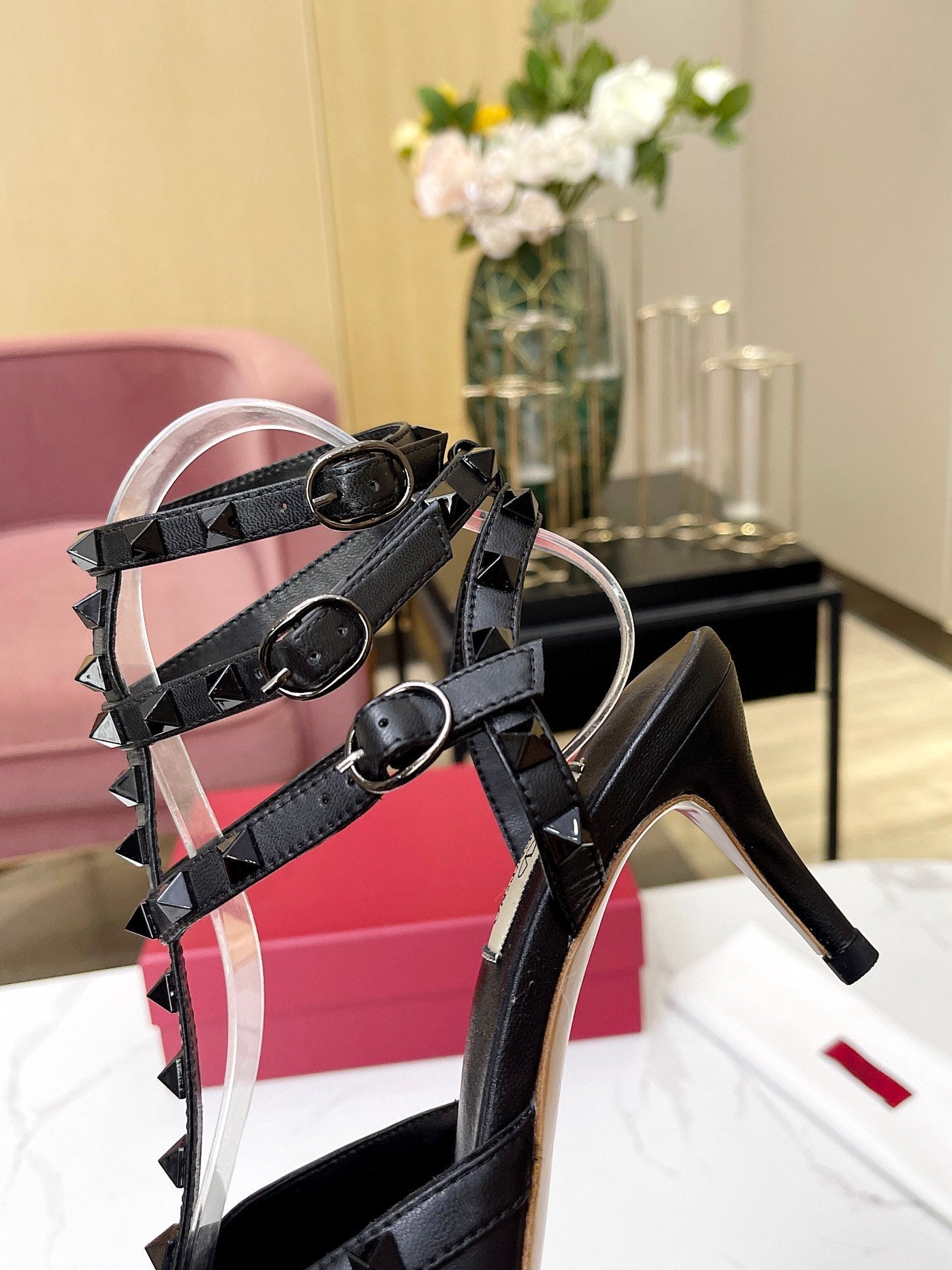 Valentino Rockstud Caged Pumps 95mm Black Beige Leather