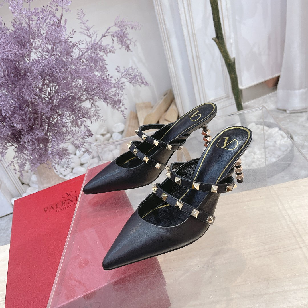 Valentino Rockstud Tower Heel Mules Sheepskin 239526
