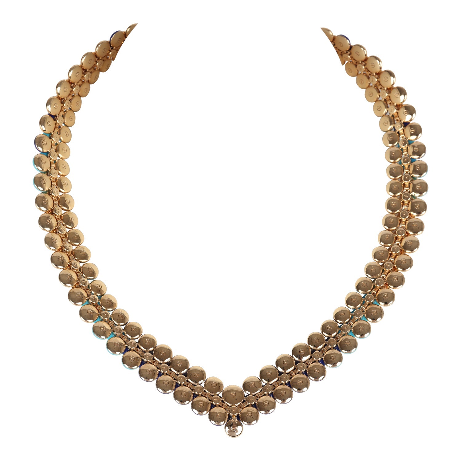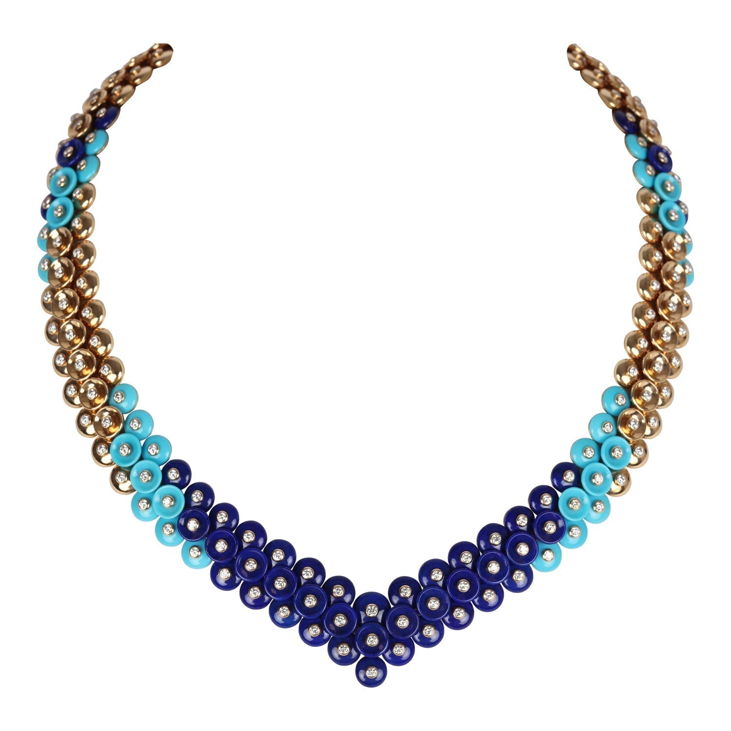 Van Cleef & Arpels Bouton D’Or Necklace Turquoise, Lapis Lazuli and Diamonds & Yellow 18K Gold Hardware