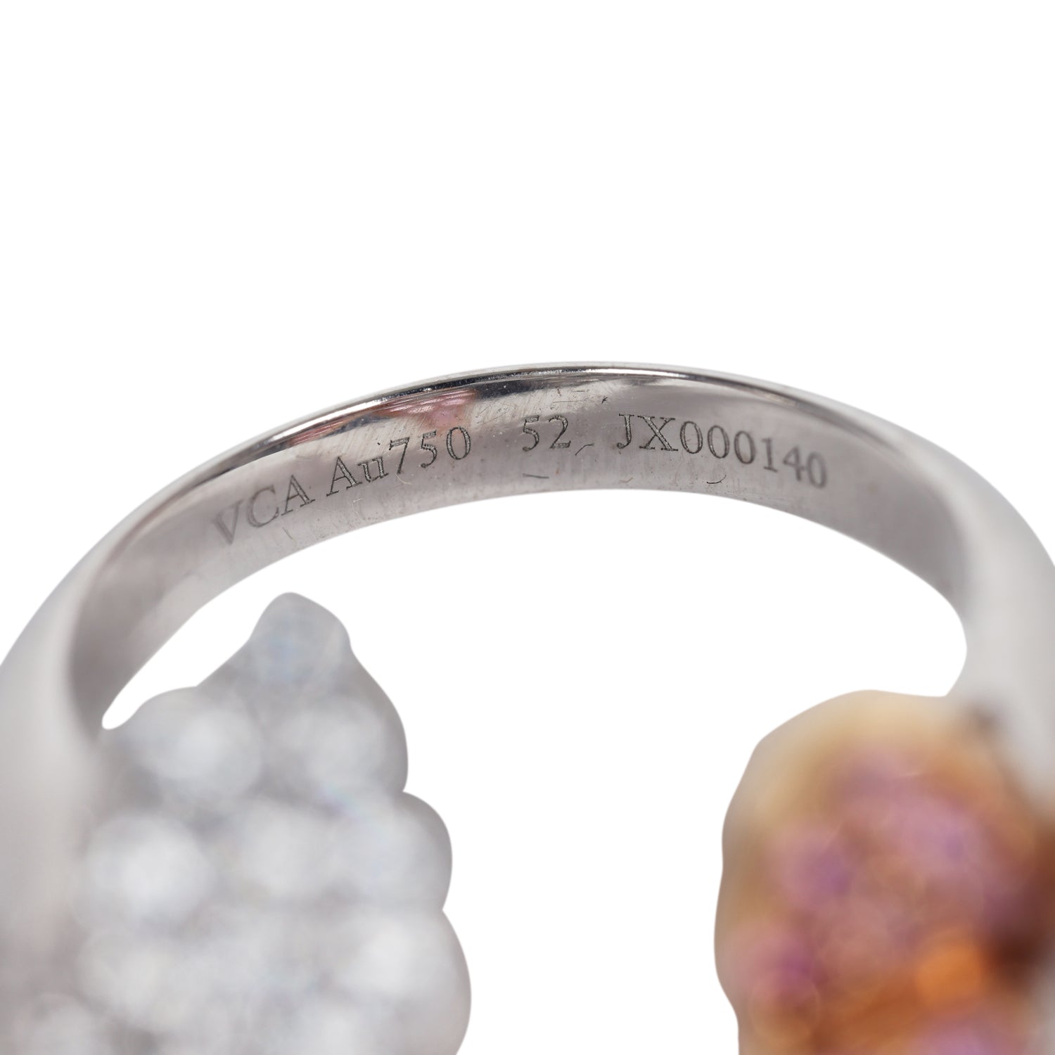 Pre-owned Van Cleef & Arpels Double Butterfly Ring 18k White Gold/Pink & Diamonds