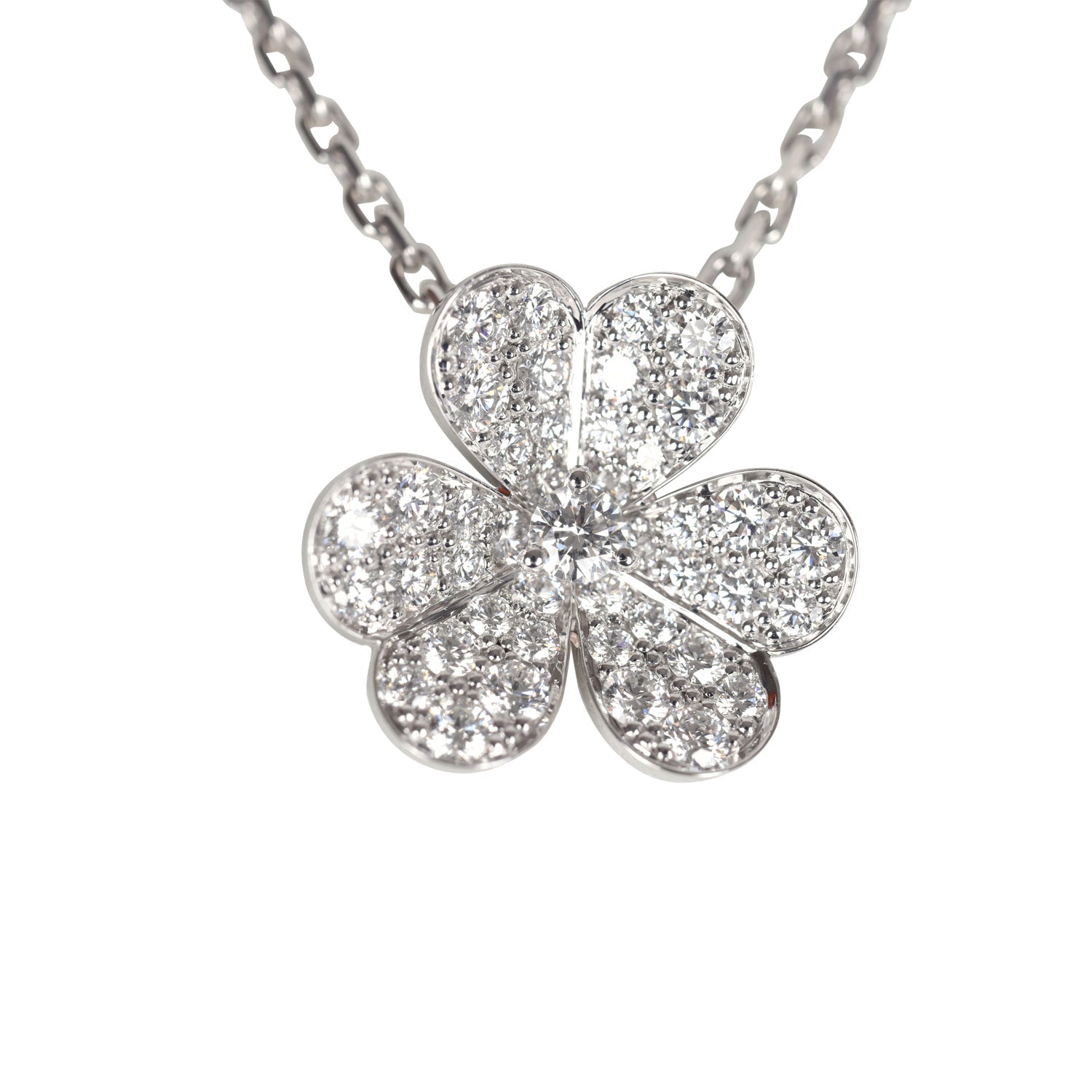 Van Cleef & Arpels Small Frivole Pendant Necklace with Diamonds 18K White Gold Hardware